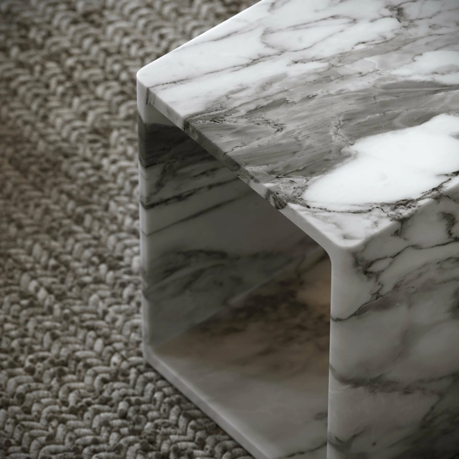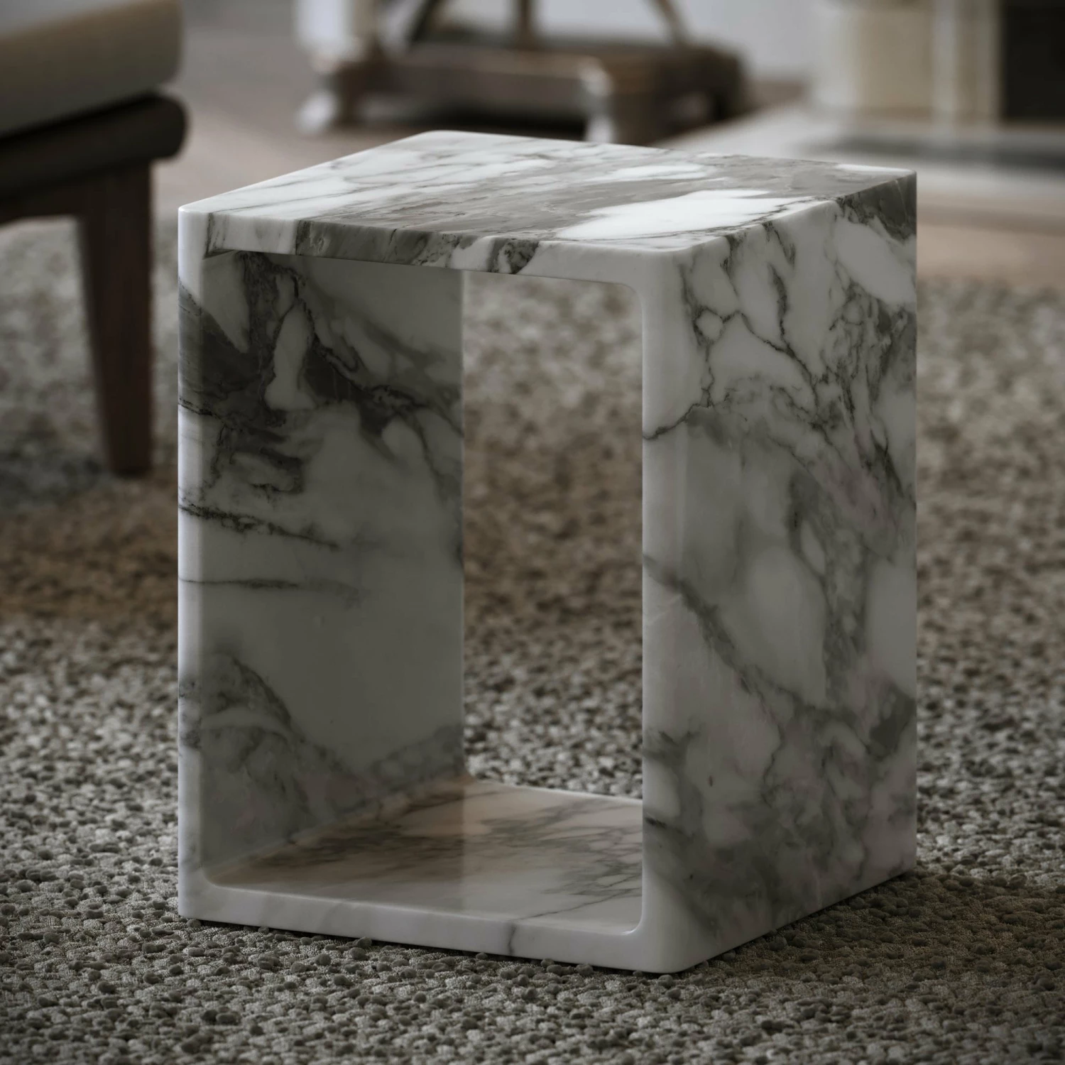 The Azzurra Arabescato Marble Side Table is a flawless piece exclusive to our marble homeware collection.