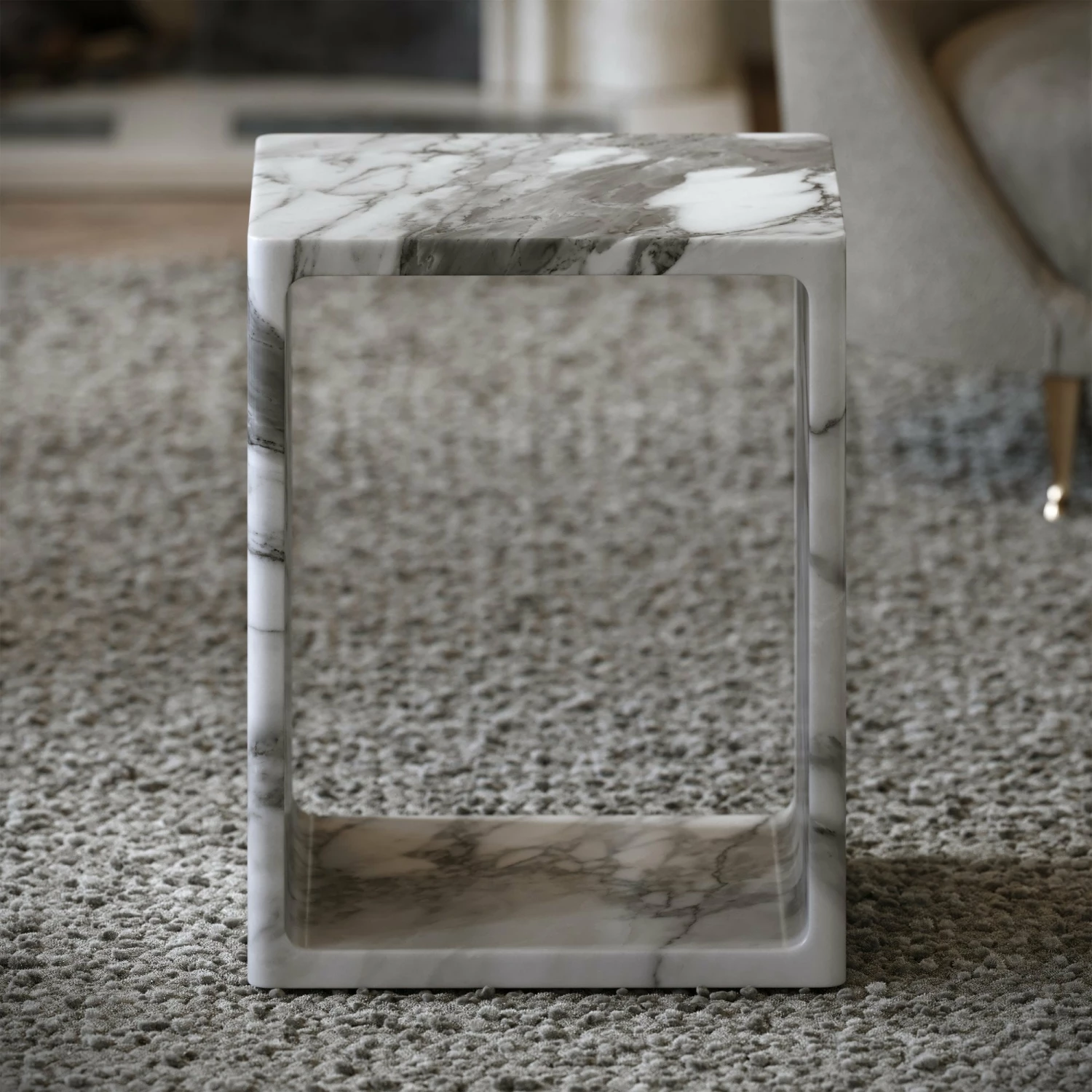 Defined by its geometric appearance and hollow structure, the side table allows you to place vases, coffee books and candles inside or atop the lavish table.