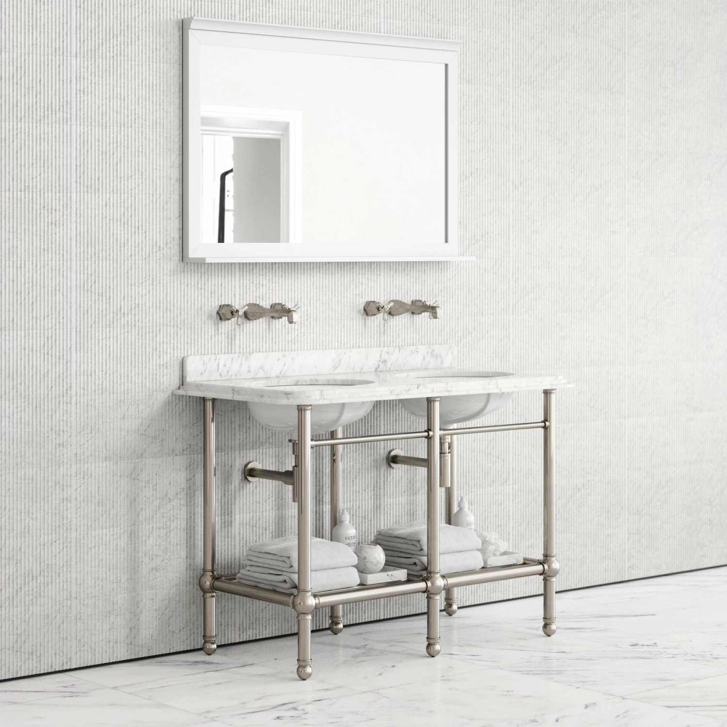 The double vanity unit is crafted from our radiant polished nickel coating, exclusive to the Deco collection, making it the perfect choice for styling with our polished nickel taps, showers and accessories of the same glowing tone.