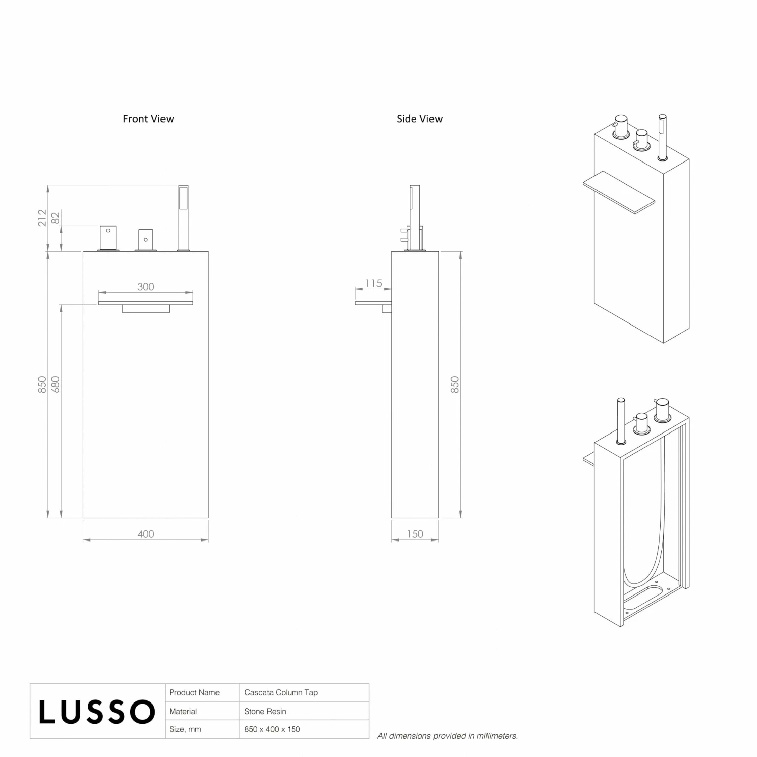 Handcrafted in-house from our signature stone resin that creates a smooth, radiant finish, along with superior strength and discernible durability. It also features chrome tapware to control the heat settings of the waterfall mixer tap.