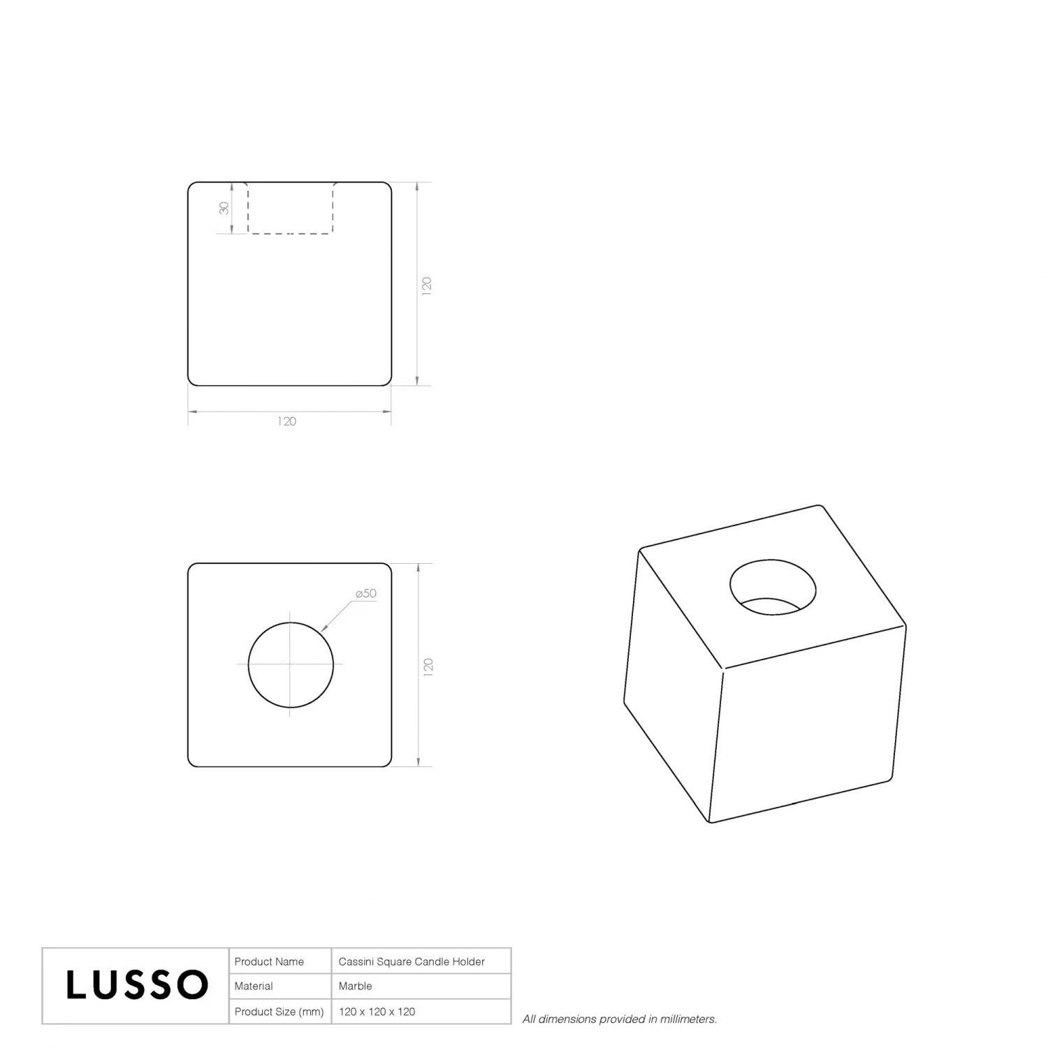 Boasting a square silhouette and solid marble surface, the candle holder can be placed atop fireplaces, coffee tables or bedside tables and works beautifully when styled with other pieces carved from the same Arabescato marble such as vases, decorative wine bottles and fruit bowls all from the Lusso Living collection.