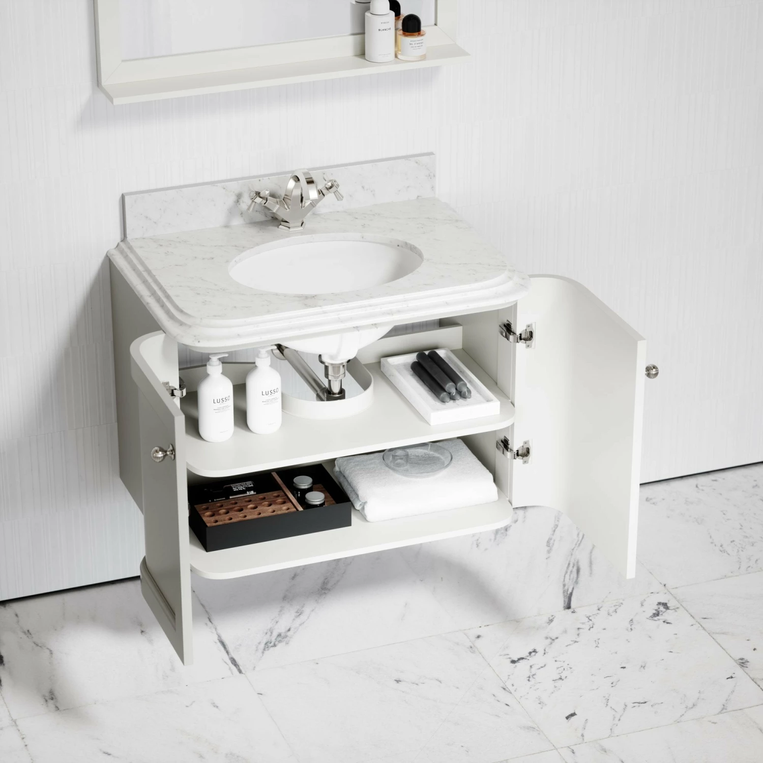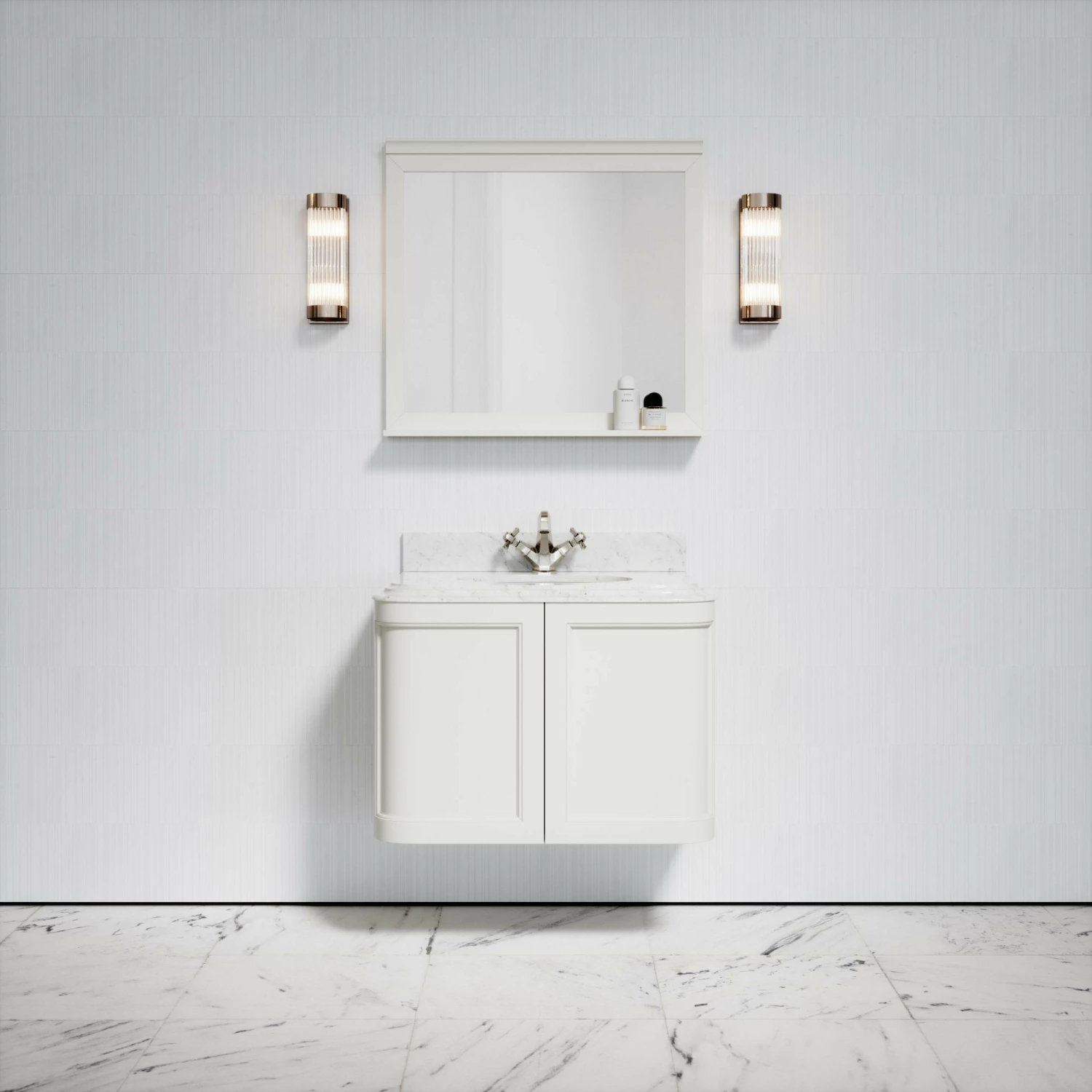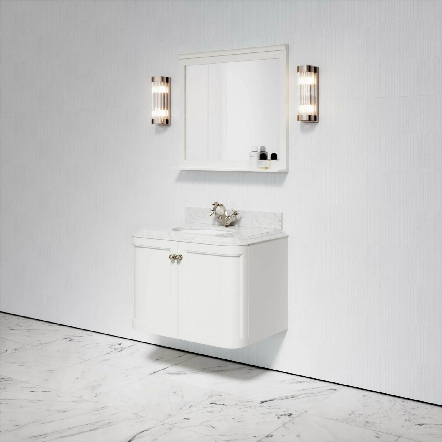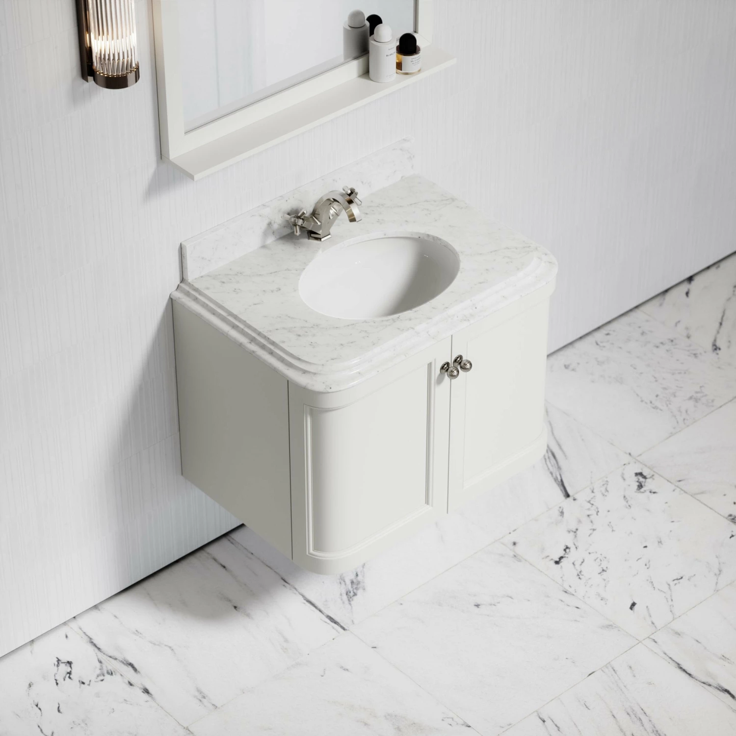 Taking notes from the interiors of the 1920s, the Charsley traditional vanity unit features a built-in oval basin surrounded by polished Carrara marble, elegantly hand-finished with cove ogee bevelling. The Charsley Vanity Unit is also crafted from marine grade plywood, ensuring a durable cabinet that can withstand high moisture and is finished in a soft matte cream coating. Beautiful in appearance and excellent in design, the Charsley bathroom vanity retains its 20th-century influence with effortless glamour that’s made to last.