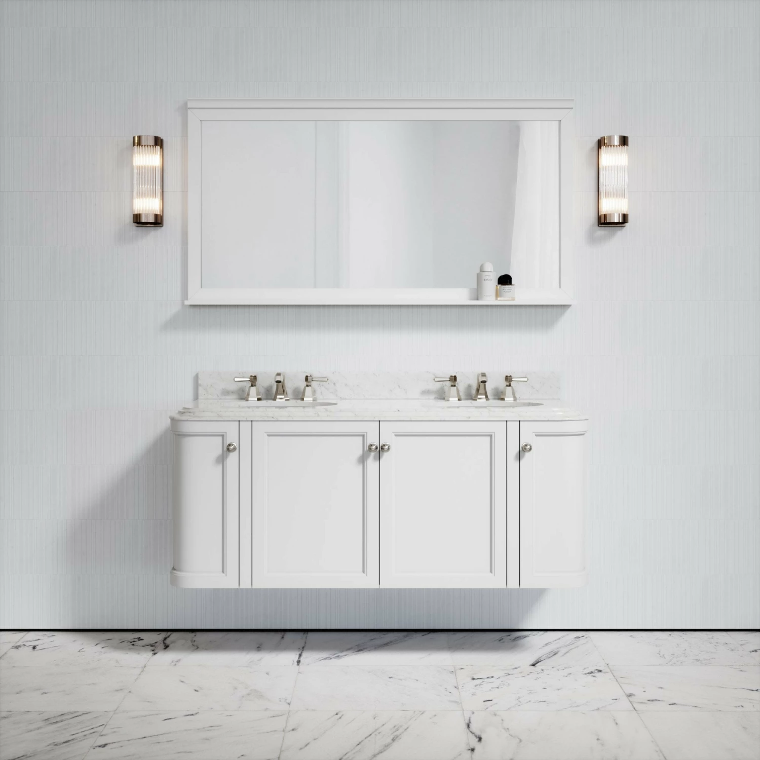 Featuring a double built-in basin, the Charsley is designed to offer luxury living for two, while its size offers easy placement in a larger proportioned bathroom. The wall mounted vanity unit is also crafted from durable marine grade plywood – designed to offer exceptional moisture resistance – that is beautifully primed for a long-lasting finish. Cove ogee bevelling to the edges showcases distinctive Art Deco notes.