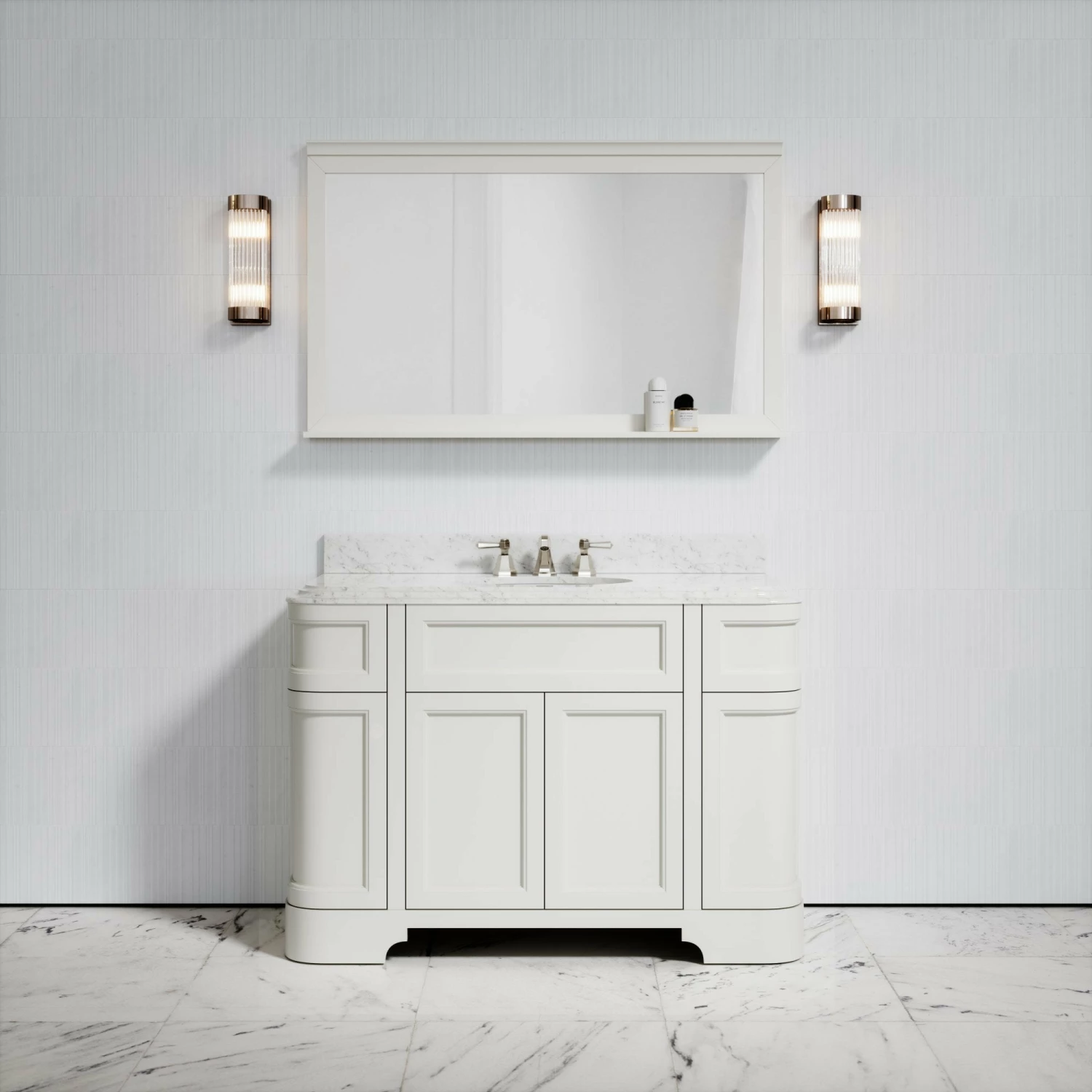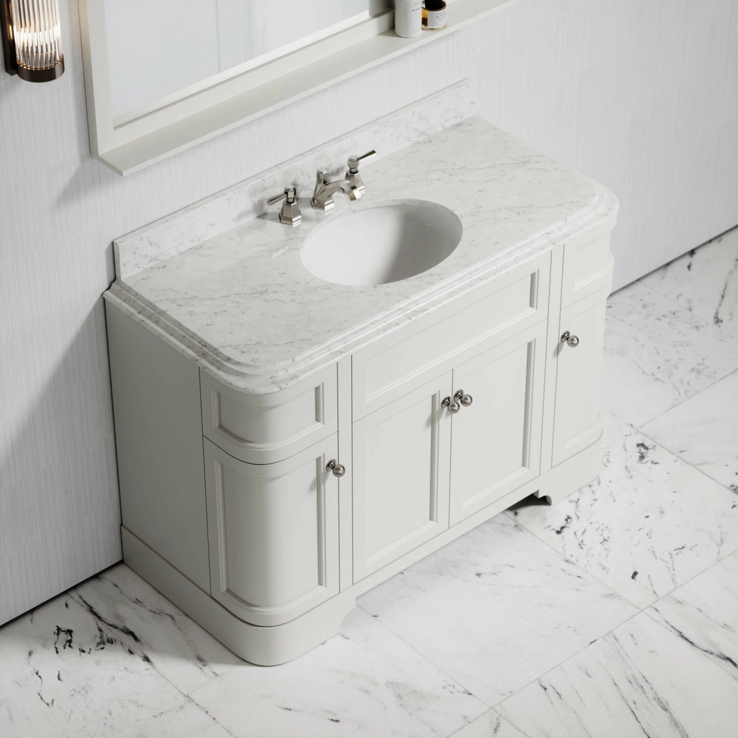 Designed at 1200mm wide, the Connaught vanity unit is designed for spacious bathrooms, and provides generous storage for uncluttered living. The bathroom vanity has been designed with soft closing cabinet doors with a push to open mechanism, eliminating the need for handles, unless preferred. If you do wish to add handles, the vanity’s concealed hinges allow you complete freedom over the finish of the accompanying bathroom fixtures.