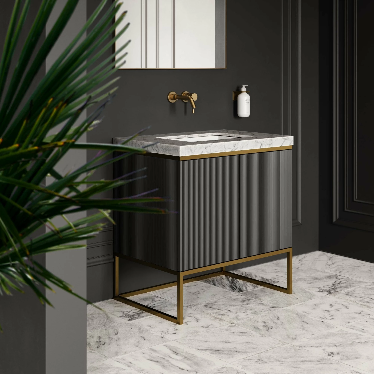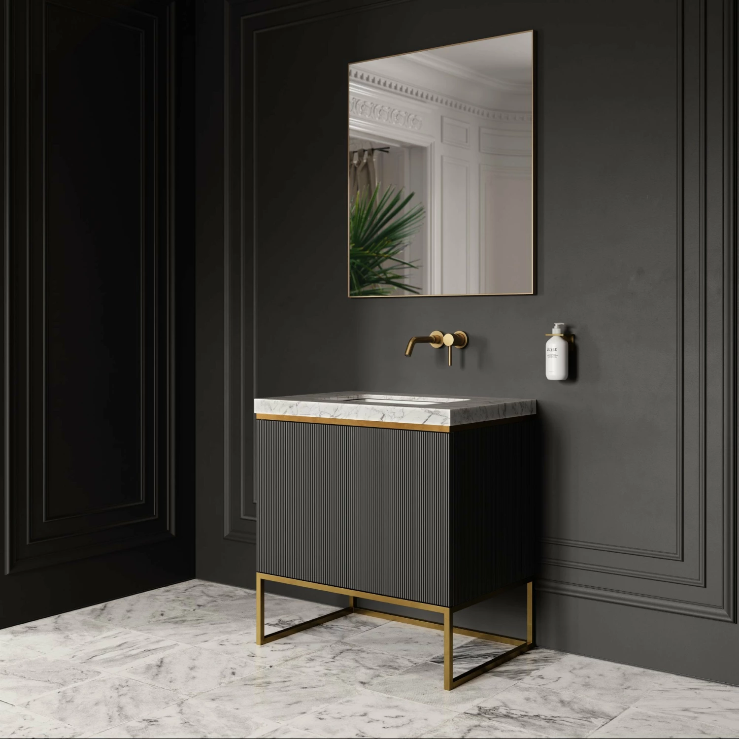 Our Couture collection of vanity units is defined by modern fluting, beautiful Carrara marble and striking brushed gold framework, that comes together to offer exclusive luxury for the home.