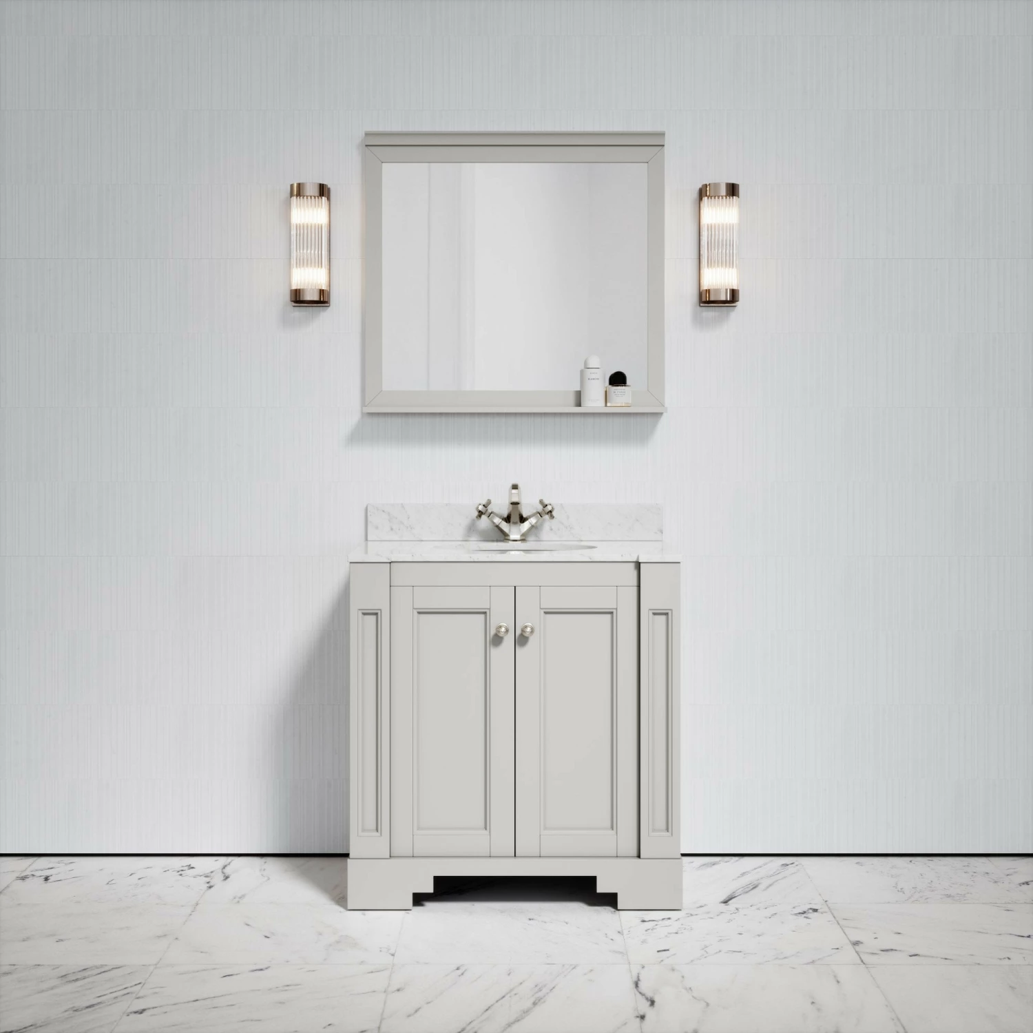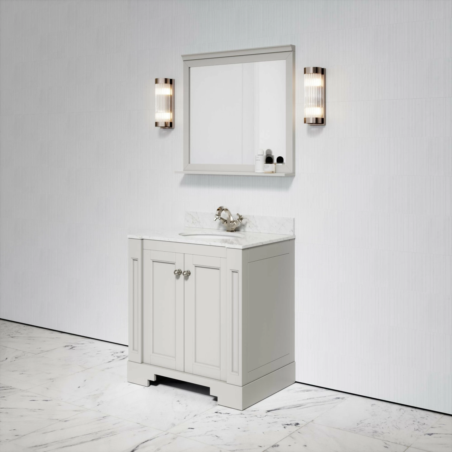 The Eaton Floorstanding Vanity Unit takes on similarities to the architecture of Art Deco, fusing 1920s glamour with contemporary style.