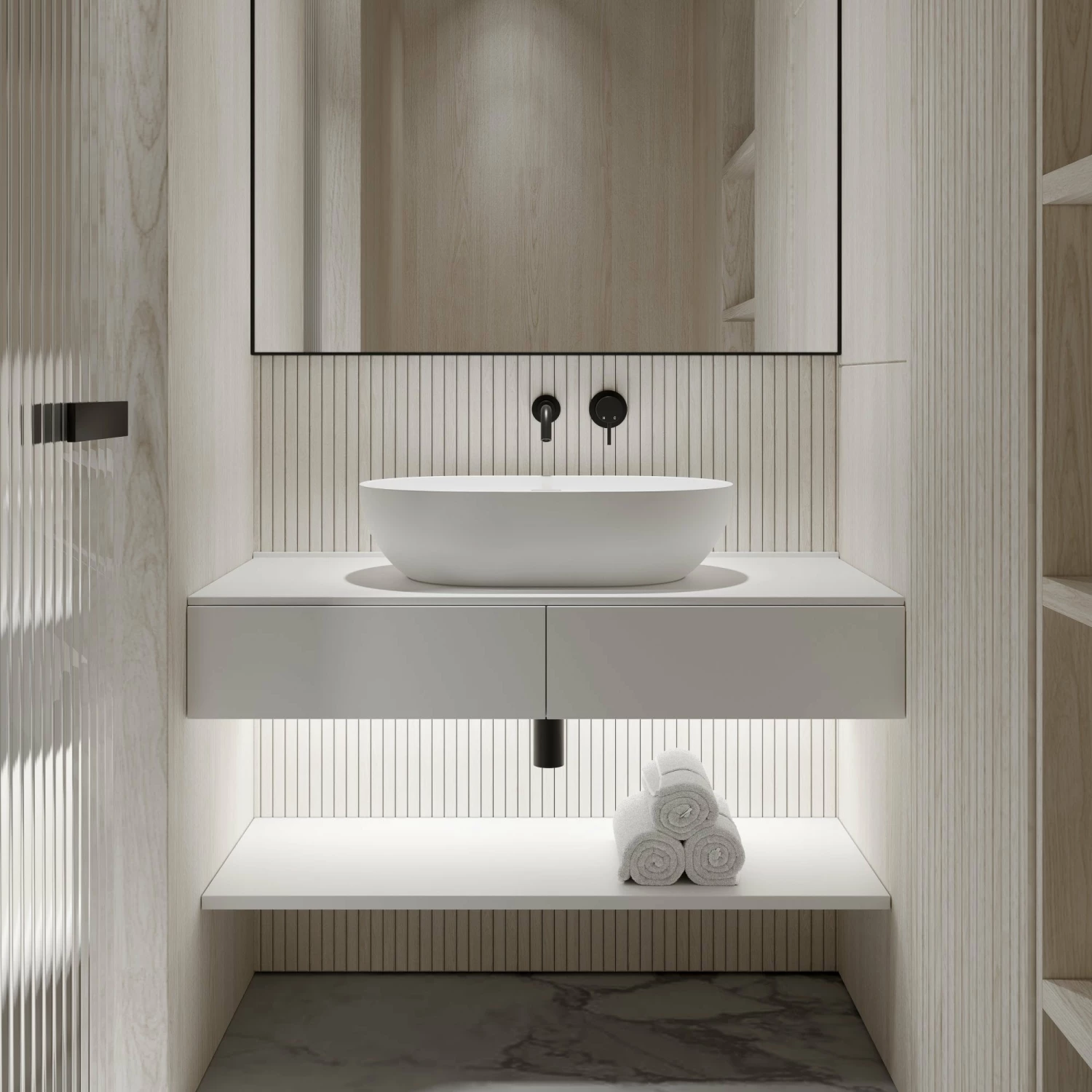 The key to any successful bathroom design is the attention to detail, the finesse of those final features, and the intricacies of your finishing ingredients. The Edge Wall Hung Vanity Drawer Unit is a product that exceeds itself on all of these levels, establishing itself as much more than just a practical feature – and rather an intrinsic element of your interior space. Unobtrusive, clean and contemporary in its design, this stunning vanity unit goes beyond functionality to become a standout feature of your bathroom, whether finished with a luxury bathroom stone basin or not.