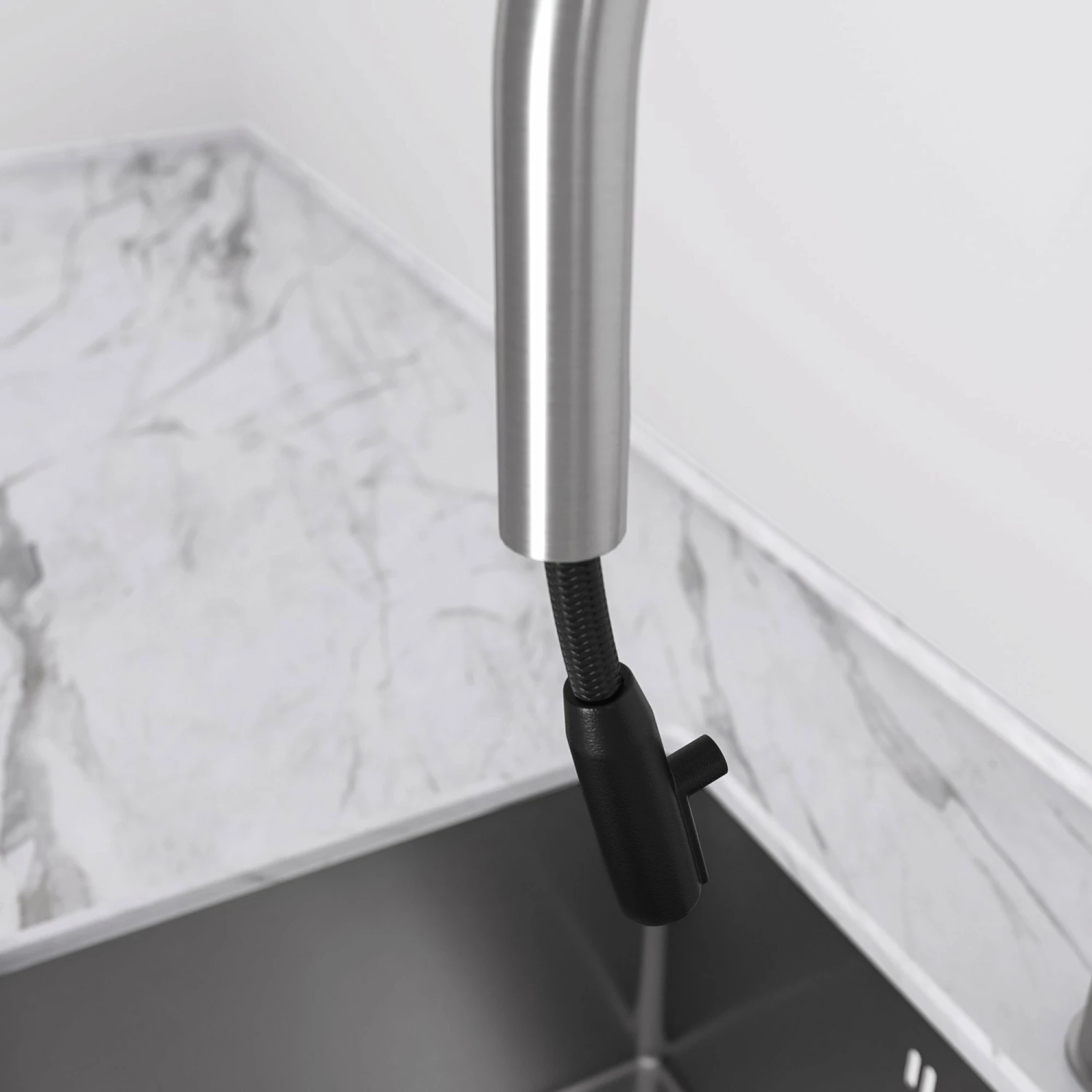 The Elegance Pull Out Kitchen Mixer Tap is luxury in both quality and appearance, ensuring a high-end addition for your kitchen that exudes a modern look and feel. With a round swivel spout, the tap features a Citec ceramic cartridge and Neoperl aerator to ensure continuous water flow, as well as a discreet pull out section that’s easy to navigate and clip back into place.