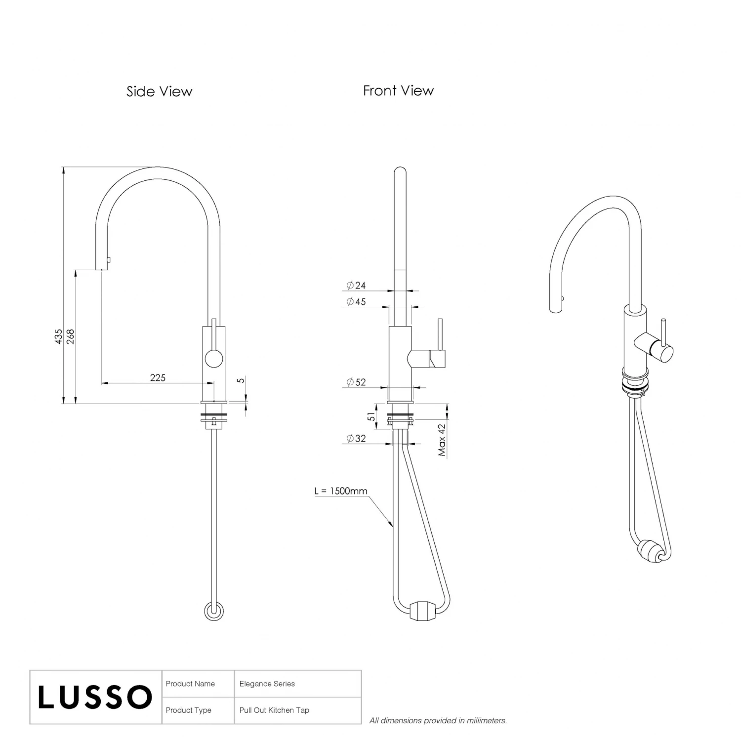 The Elegance Pull Out Kitchen Mixer Tap is defined by its gunmetal finish, making it the perfect modern upgrade to the kitchen.
