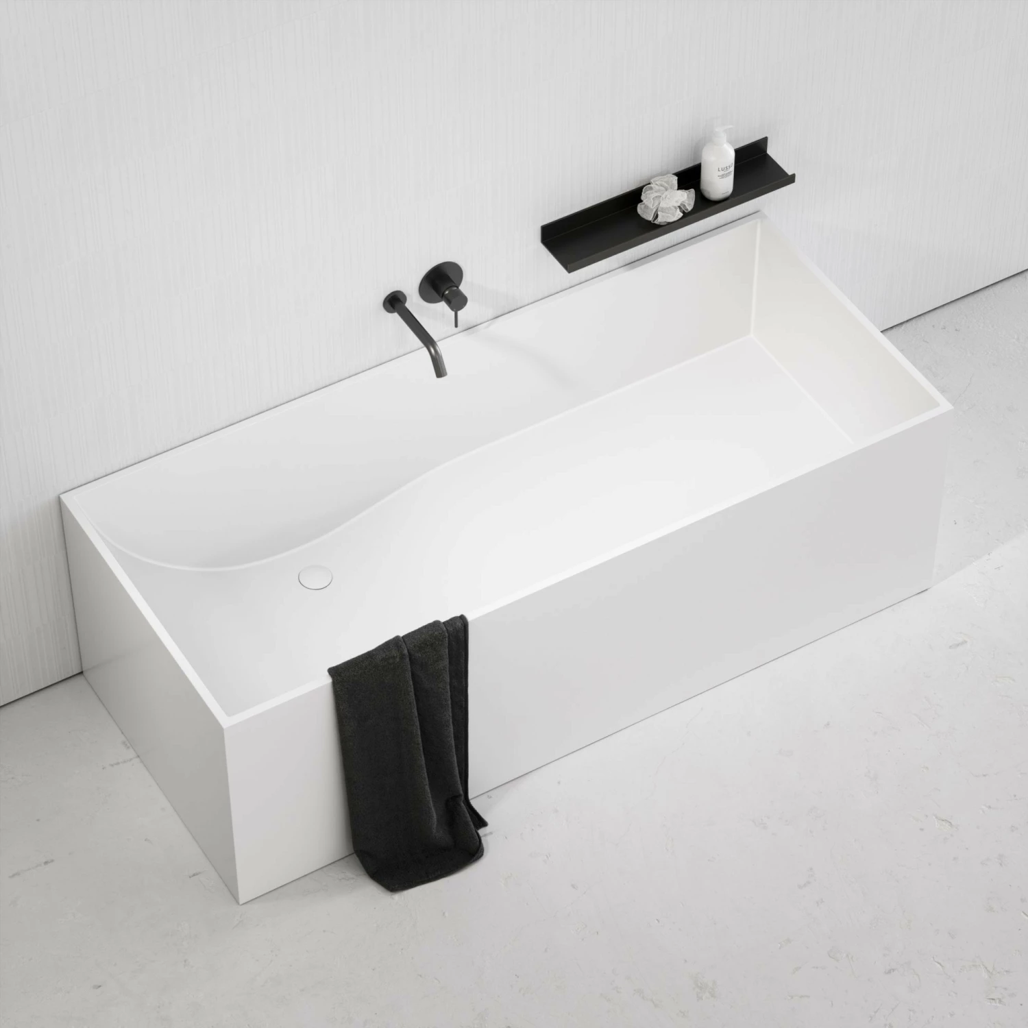 There are few stone baths as simplistically chic as the Ethos. Exuding straightforward energy through the clean, structural lines, this deceptively decadent stone bath is perfect for minimalist interiors. The seamless style of the Ethos elevates even compact spaces, allowing your space to be enriched by solid materials and creative craftsmanship. Opt for matte or polished for a sleek, contemporary feel and match this beautiful bath with the Lusso collection of bathroom basins.