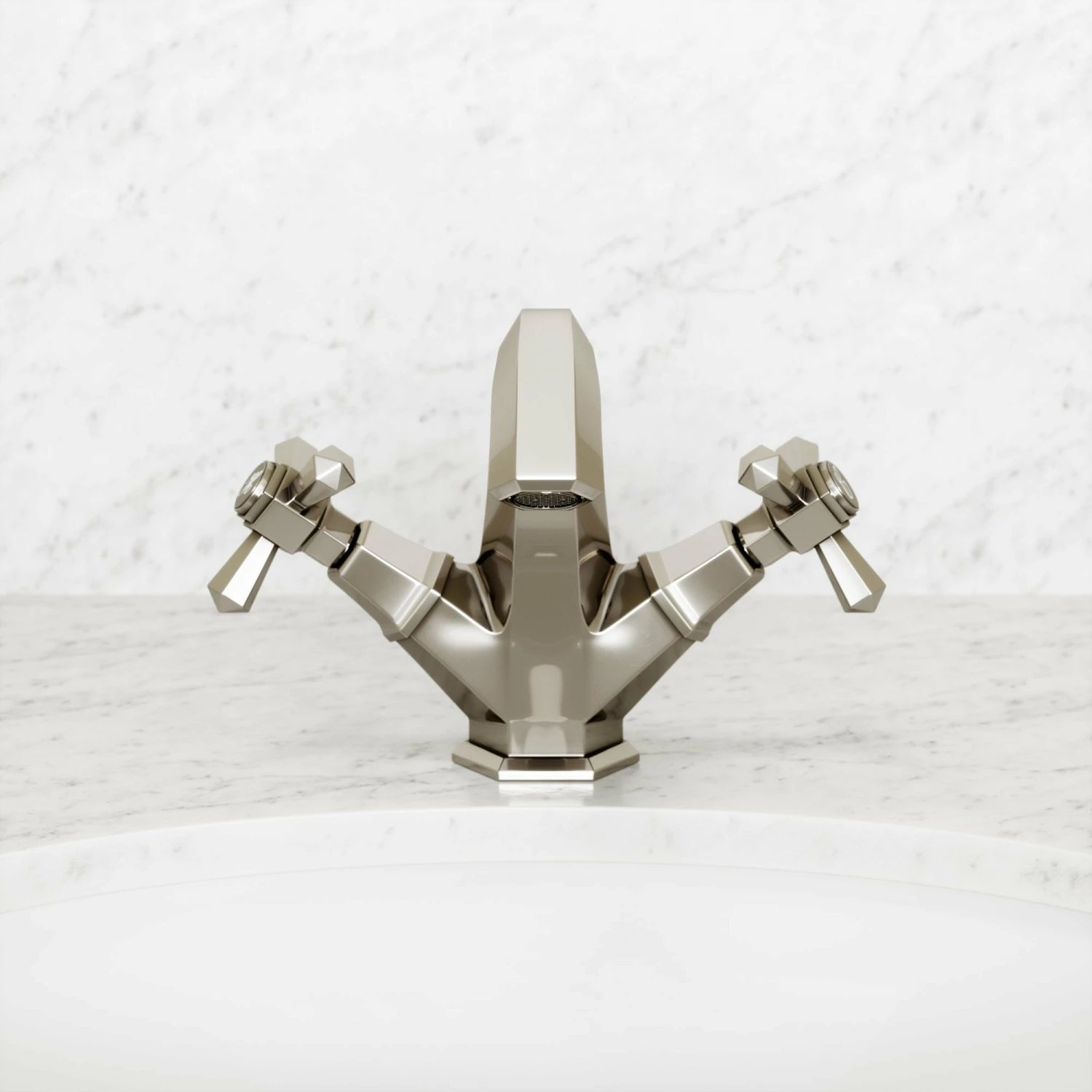 Beautifully presented, the Eton bathroom mixer tap is a fitting homage to the brassware of the prominent Art Deco era, paying particular attention to the geometry and sunburst motifs that are synonymous with the art movement. The polished nickel taps are also hand-finished to create an impeccable sheen.