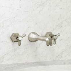 Our Deco Eton wall-mounted basin tap is perfectly designed to retain its Art Deco inspiration through strong geometrical shaping and beautiful warm undertones.