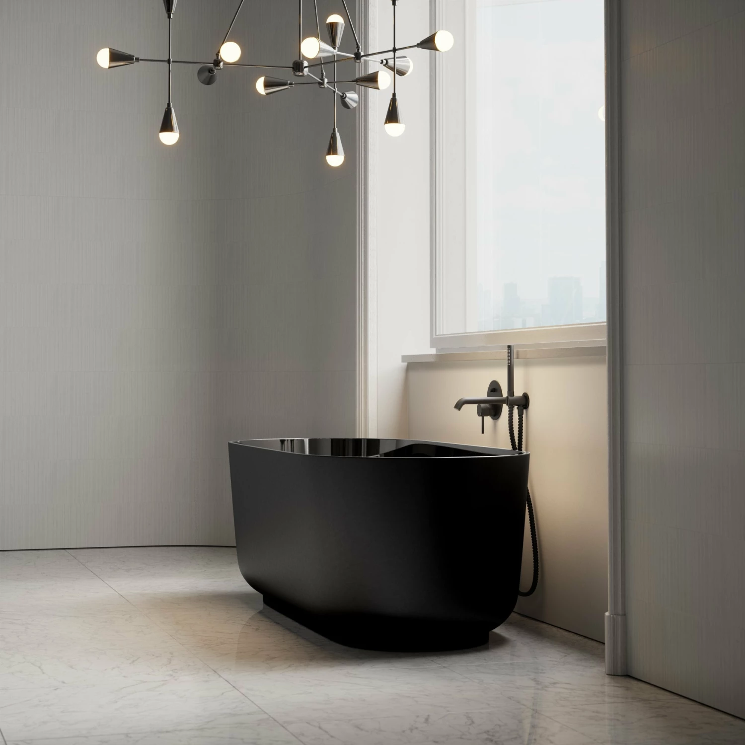 The Hutton Matte and Polished Black Bath instantly create’s a striking statement in your bathroom. Mirroring opulent decor found in the world’s most luxurious hotels, the Hutton is the epitome of luxury bathing.