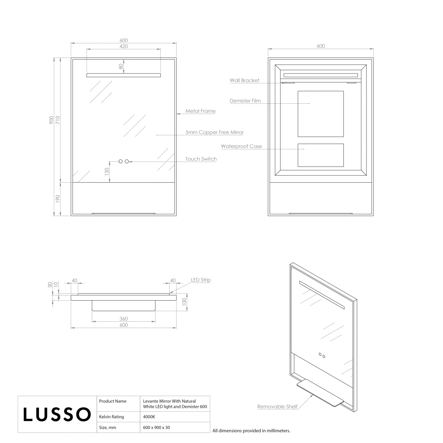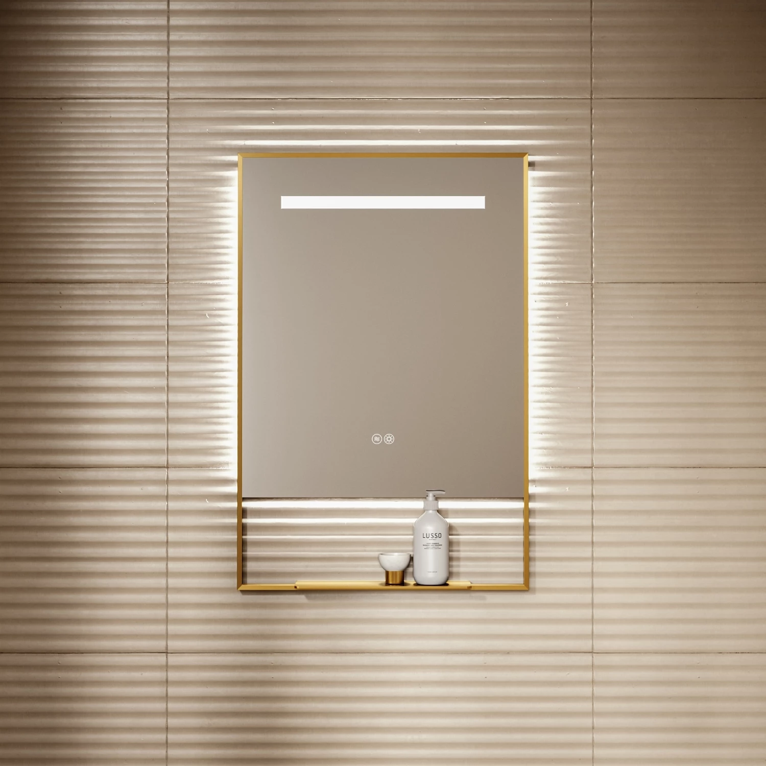 Levante Brushed Gold Mirror With Natural White LED Light And Demister 600mm