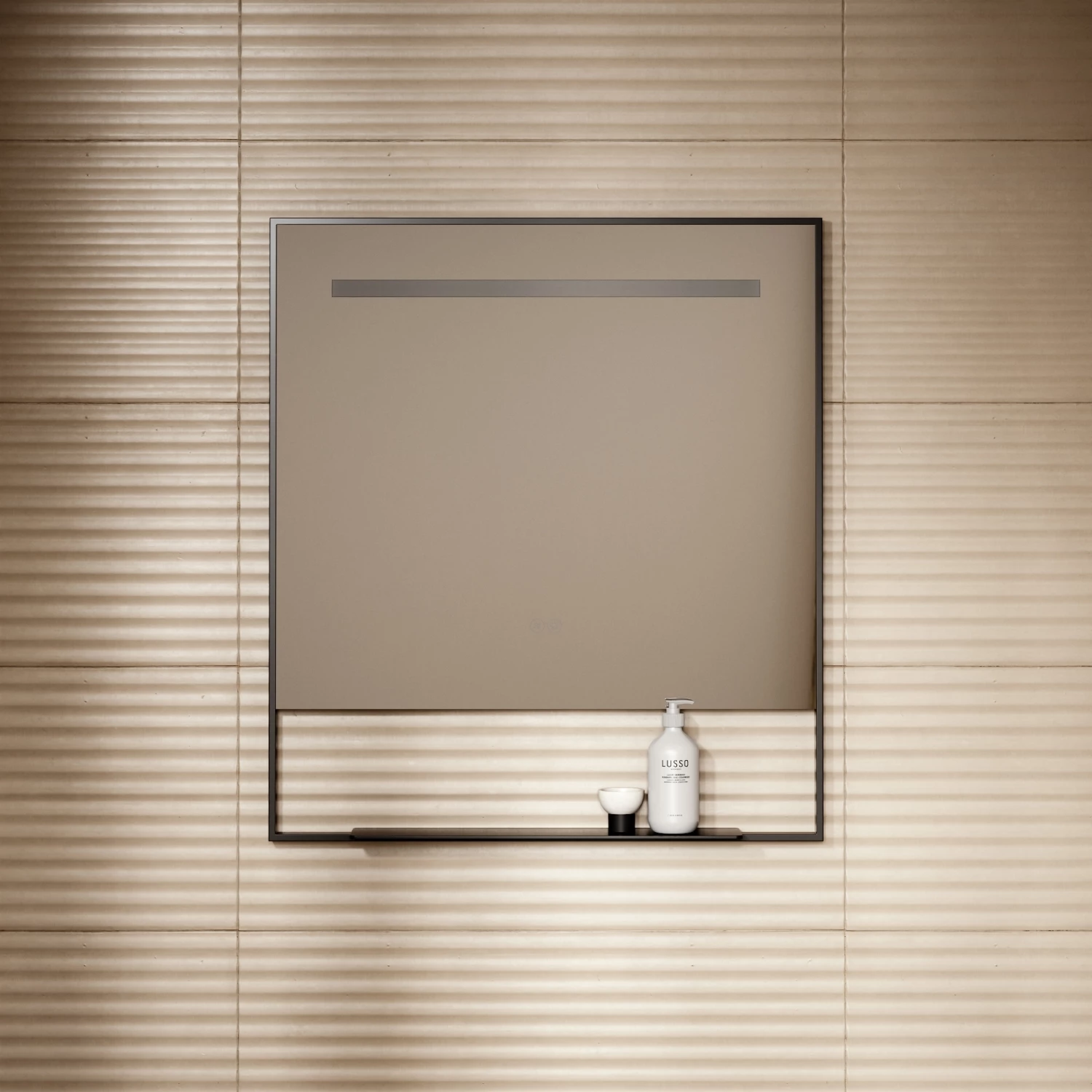 Boasting our matte black finish, the mirror contains a touch control LED light and a removable shelf, allowing you to decorate with your favourite decorative items, or simply for placing your beauty products and phone.