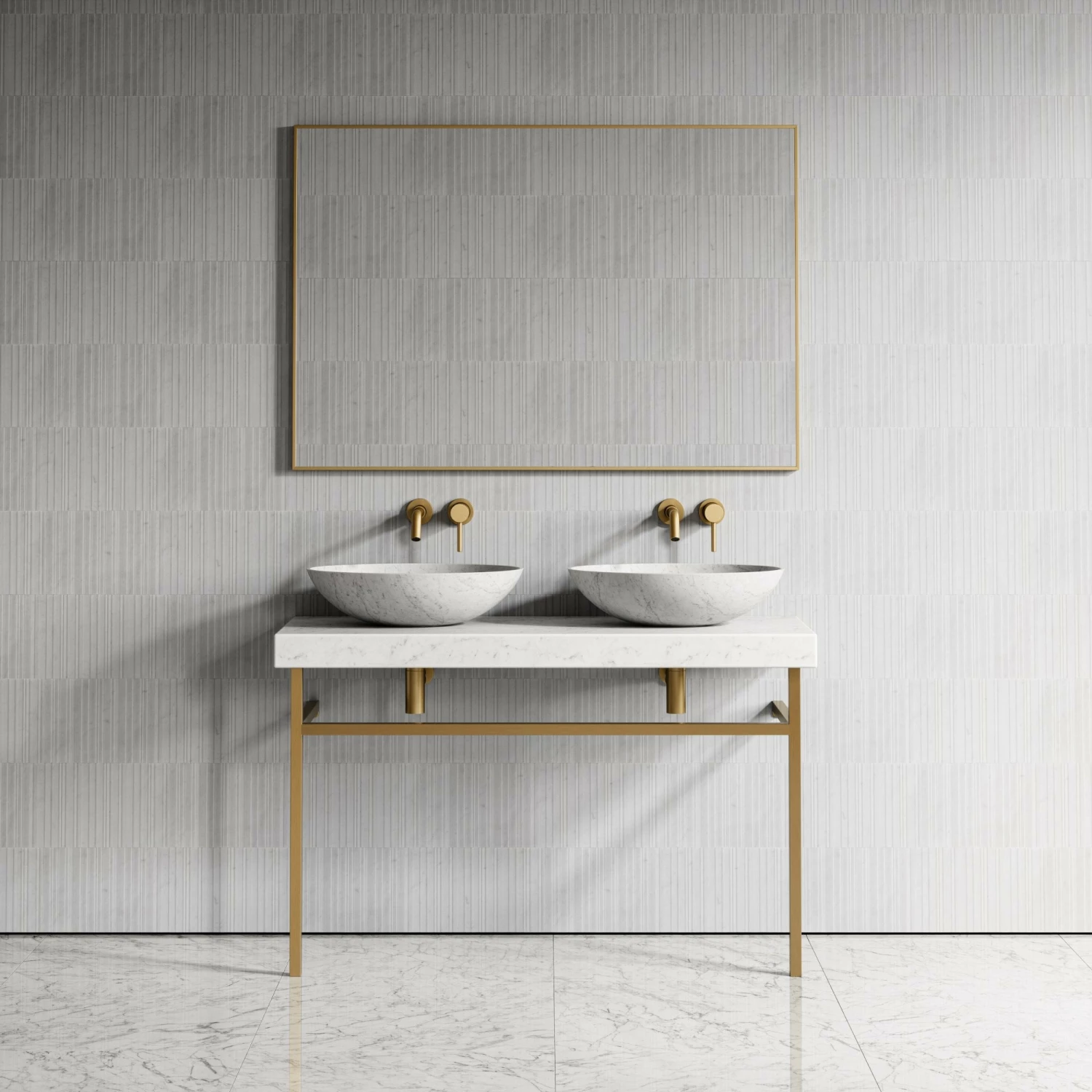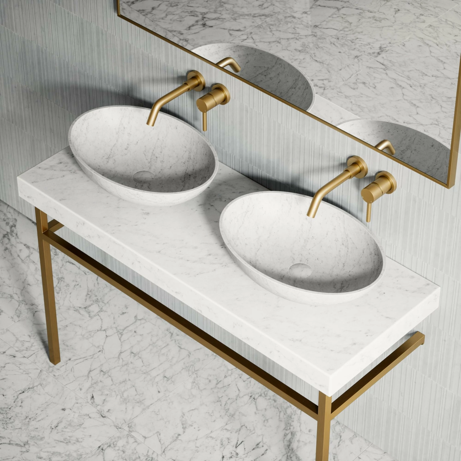 The Lomazzo Countertop Vanity Unit is the perfect option for couples bathrooms, family bathrooms or an opulent hotel suite, boasting generous space for two countertop marble basins.