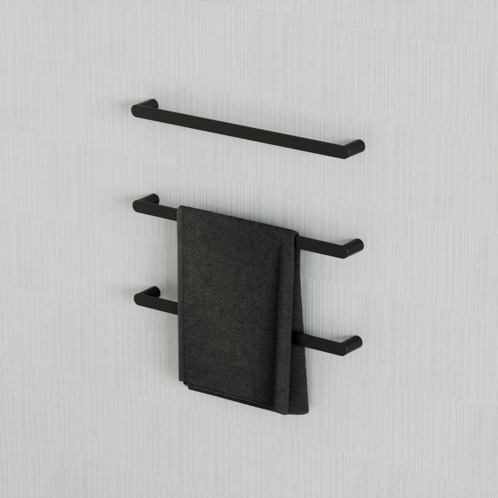 A singular componant matte black towel rail is 600mm and spacing between the three bars can be adjusted to fully customize and fit your space perfectly. It is the ideal choice for anyone looking for a practical addition to their bathroom that still exudes sophistication. Discover the full range at Lusso today.