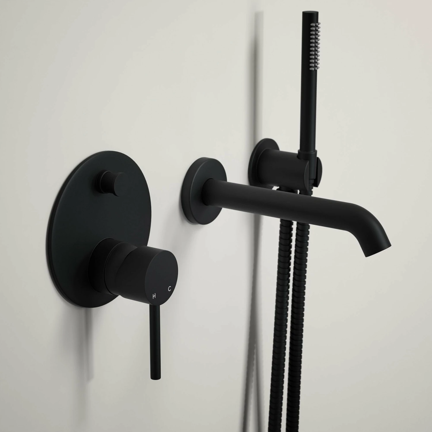 With a Neoperl aerator for a continuous flow, the Lusso Wall Mounted Bath Shower Mixer Tap Matte Black has a 15-year guarantee and features a Citec ceramic cartridge. It offers a spout projection of 190 mm and is made from commercial-grade components.