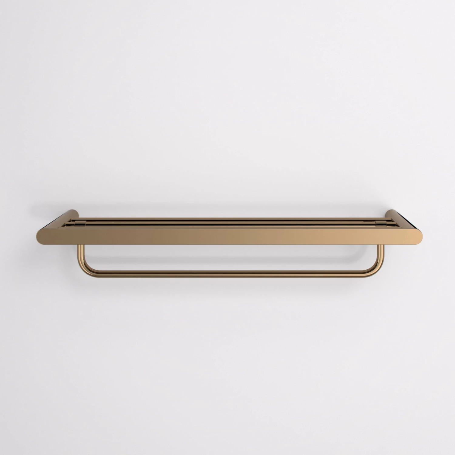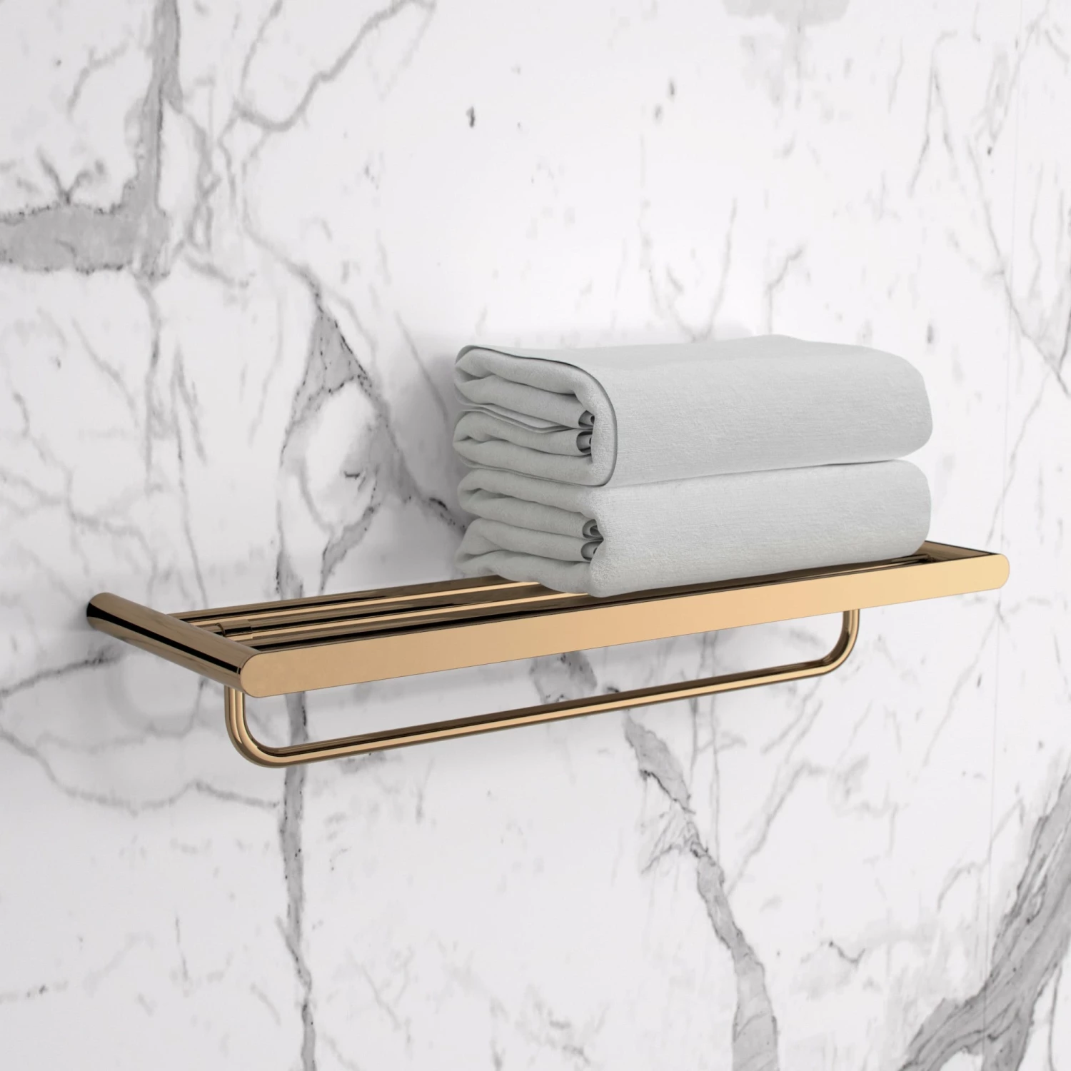 Contemporary elegance has never been so achievable thanks to our luxe rose gold towel shelf with rail 600. Our team of artisan designers have created an array of products designed to elevate your bathroom. This rose gold towel shelf with rail is the epitome of signature Lusso design, offering practical style to suit the modern home.
