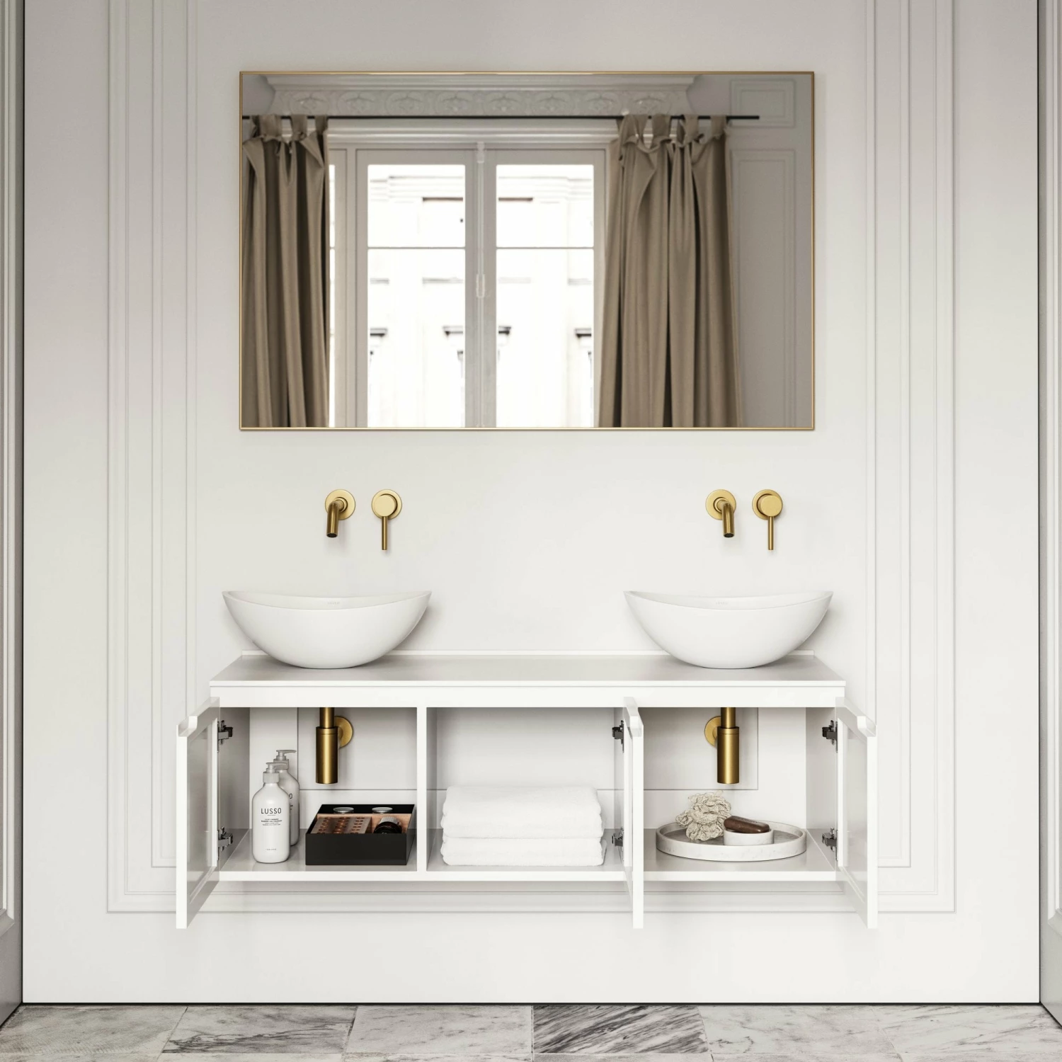 Storage can be so much more than a practical addition to your bathroom space, done correctly, it’s able to provide its own element of design and add to the aesthetics of your bathroom. Our wall hung Luxor Matte White Vanity Cabinet is one such way of achieving this. With its clean, contemporary finish as well as the option to include one of our luxurious Lusso bathroom basins, this versatile vanity unit is the finishing touch that your bathroom has been begging for.
