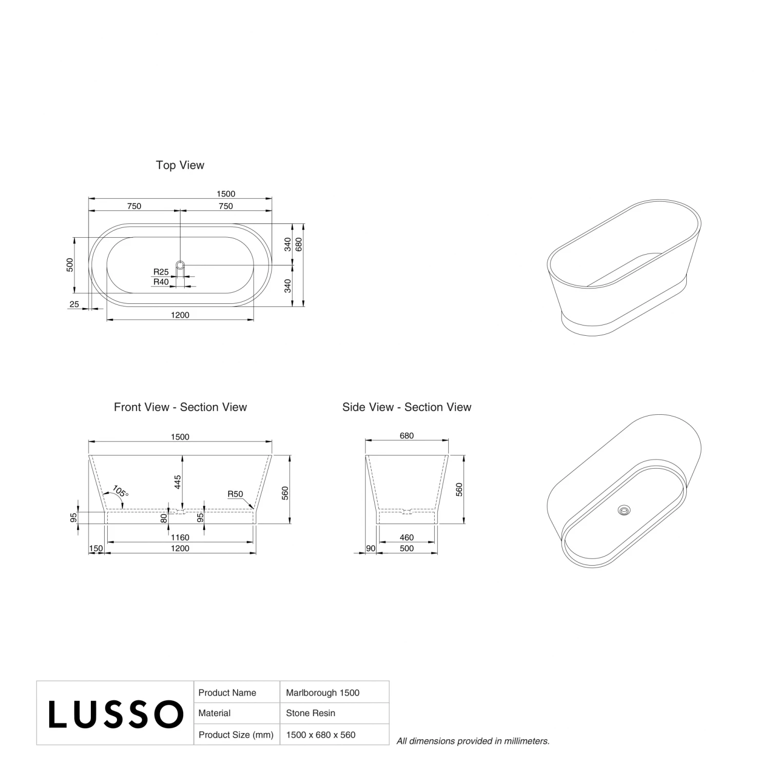 Be the first to review “Marlborough Freestanding Stone Bath 1500mm” Cancel reply