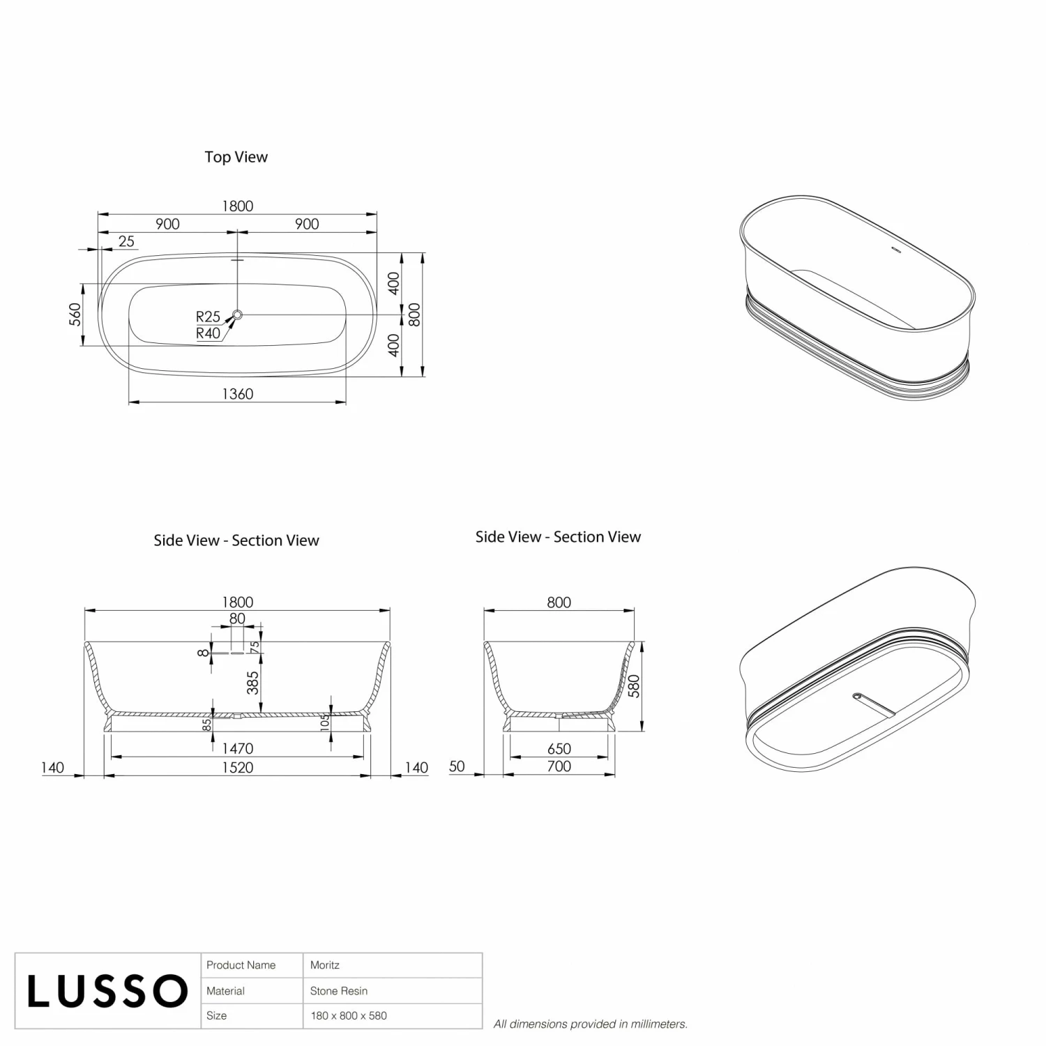 The Moritz freestanding bath offers a true sense of beauty and sophistication, with soft curves and clean lines that elevate this piece to luxurious heights. The ornate design adds a touch of decadent glamour to your space, perfect for adding excitement to understated interiors. With an innovative design, spacious bathing capacity and premium materials, the Moritz is a fusion of quality and style, helping you achieve the bathroom suites you dream of in the luxury of your own home.