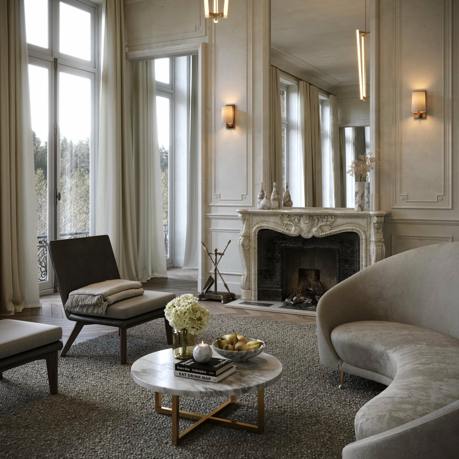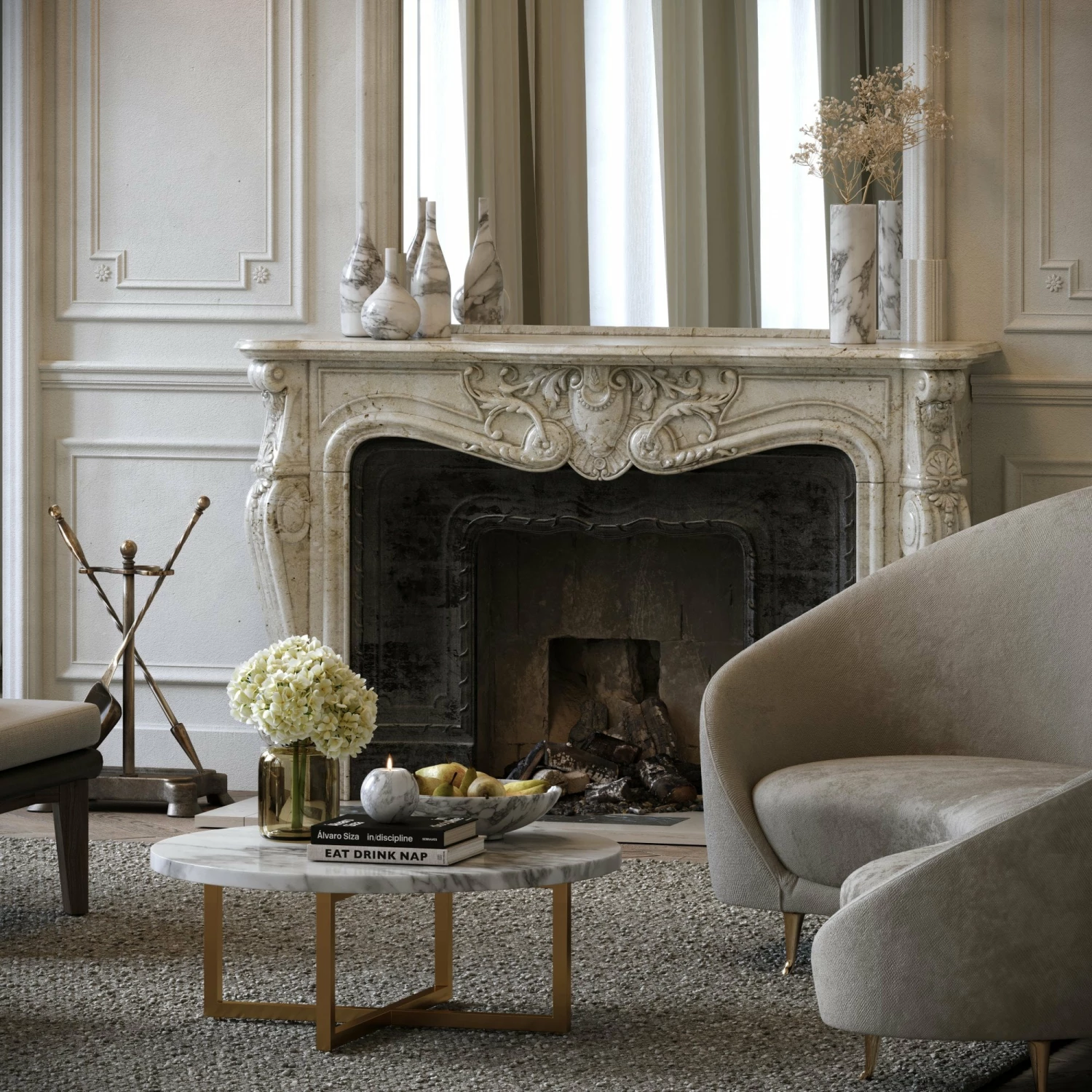 Model: Nazzano Arabescato Marble Round Coffee Table