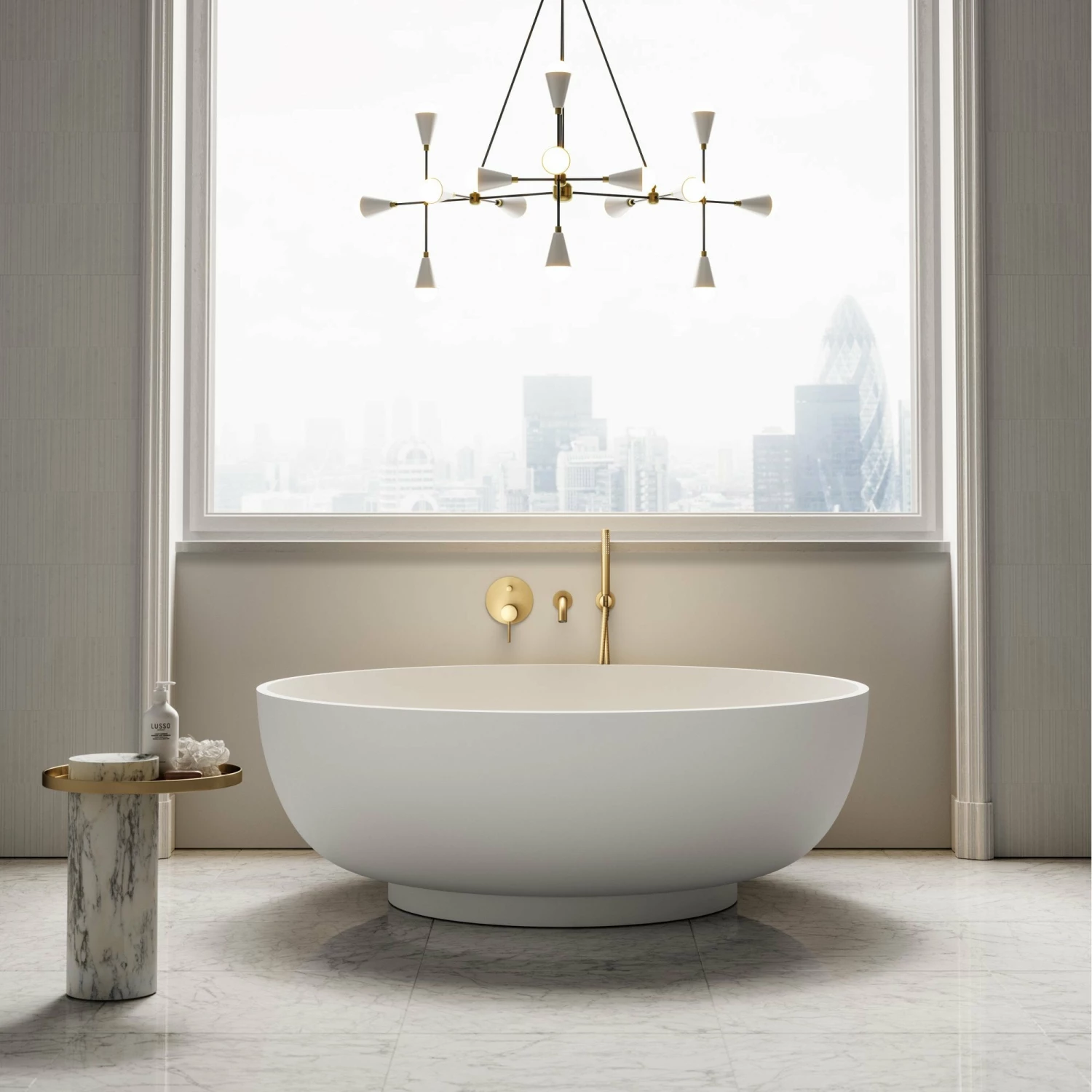 Undeniably decadent and designed to offer the epitome in luxury bathing, the Notion 1500 freestanding round bath is an experience in itself. Showcasing modern grandeur, the clean-lined silhouette is softened by the curves and tactile finish of this regal piece. The Notion 1500 stone bath celebrates true craftsmanship, perfect for dramatic, palatial spaces where luxurious living reigns supreme.