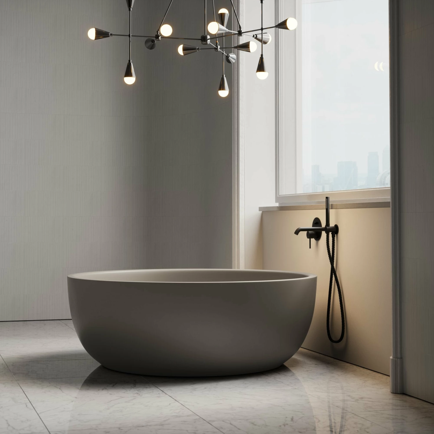 Offering the latest in luxury, explore Lusso’s Notion silhouette reinvented as part of the Silk Collection. The Notion freestanding bath epitomises relaxation, bringing a dose of spa-like escapism to your home through its large silhouette and tranquil silky feel. Its matte finish adds decadence to its luxurious stone structure, defining its soft curved edging and deep shape- a truly timeless bathroom addition. This earthy toned tub can be styled with our collection of gunmetal finishes to achieve complete industrialised elegance.