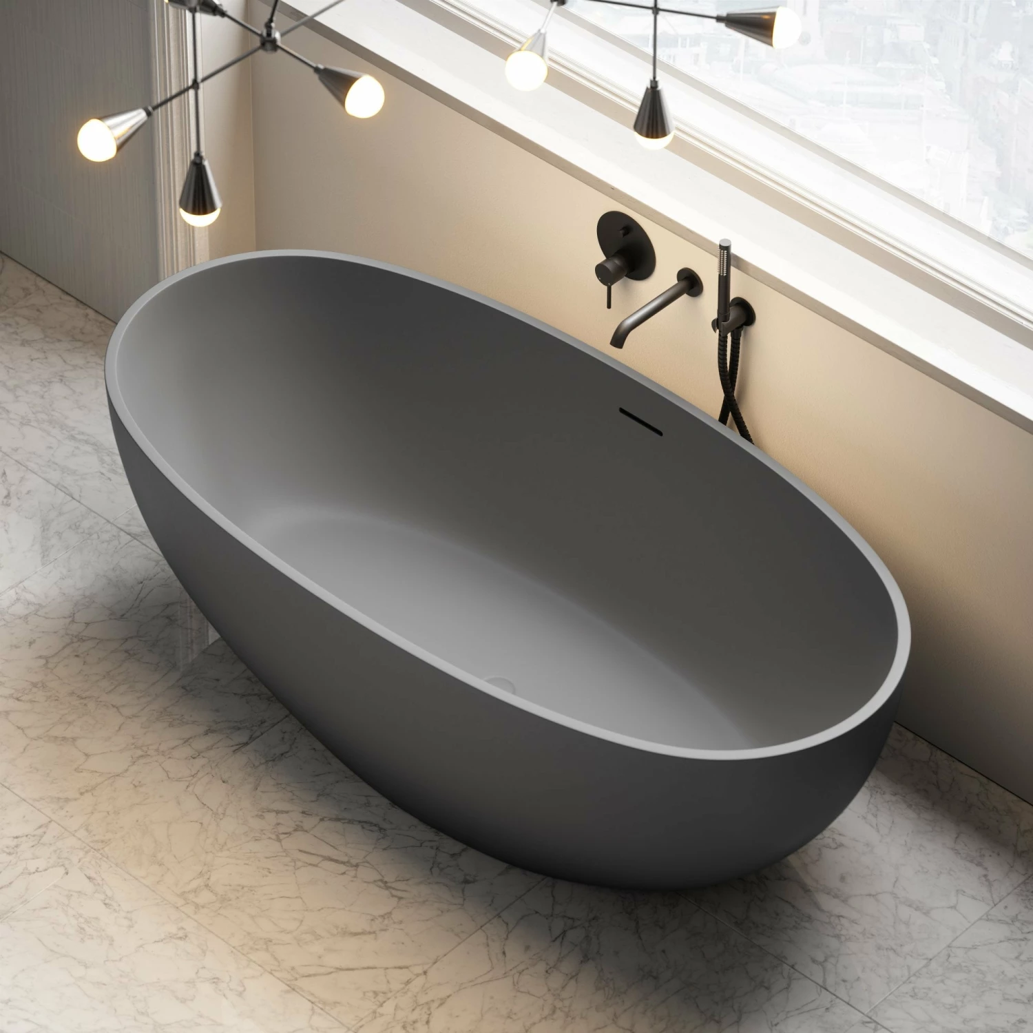 A new and innovative take on our signature Picasso freestanding bath, The Picasso in Pebble Grey is part of our groundbreaking silk range. Our artisans have created a version designed for compact spaces in our signature Picasso style. Perfect for either end bathing, the Picasso 1650mm bath merges impeccable comfort with decadent design to form a piece that’s captivating in every sense. This is a truly stunning example of more earthy neutral tones combining to create an elegant and modern look, accentuated by our gunmetal grey bathroom fixtures.