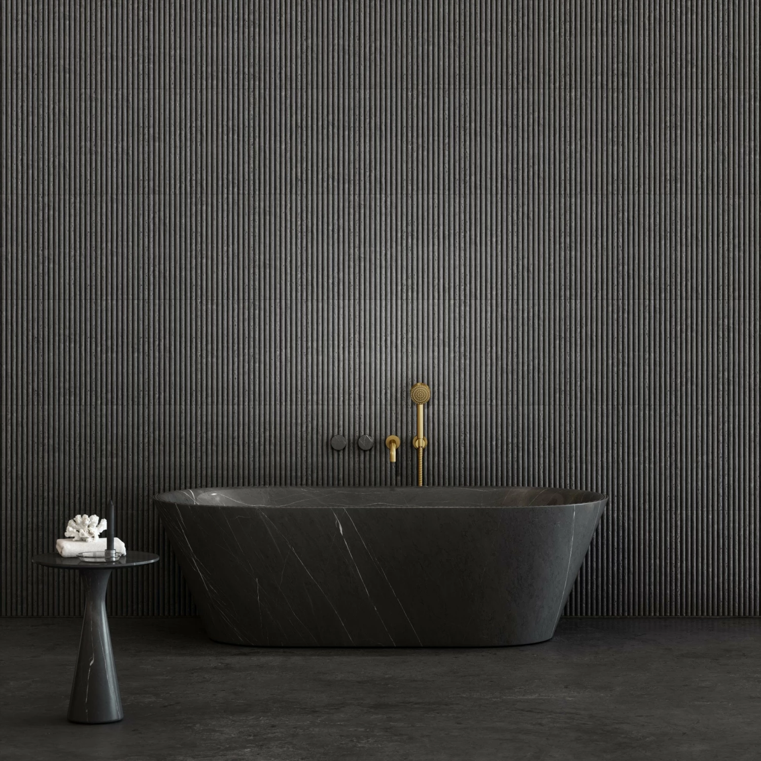 Exuding decadence and drama through its deep grey hues, the Muse bath boasts a handsomely luxurious appeal.
