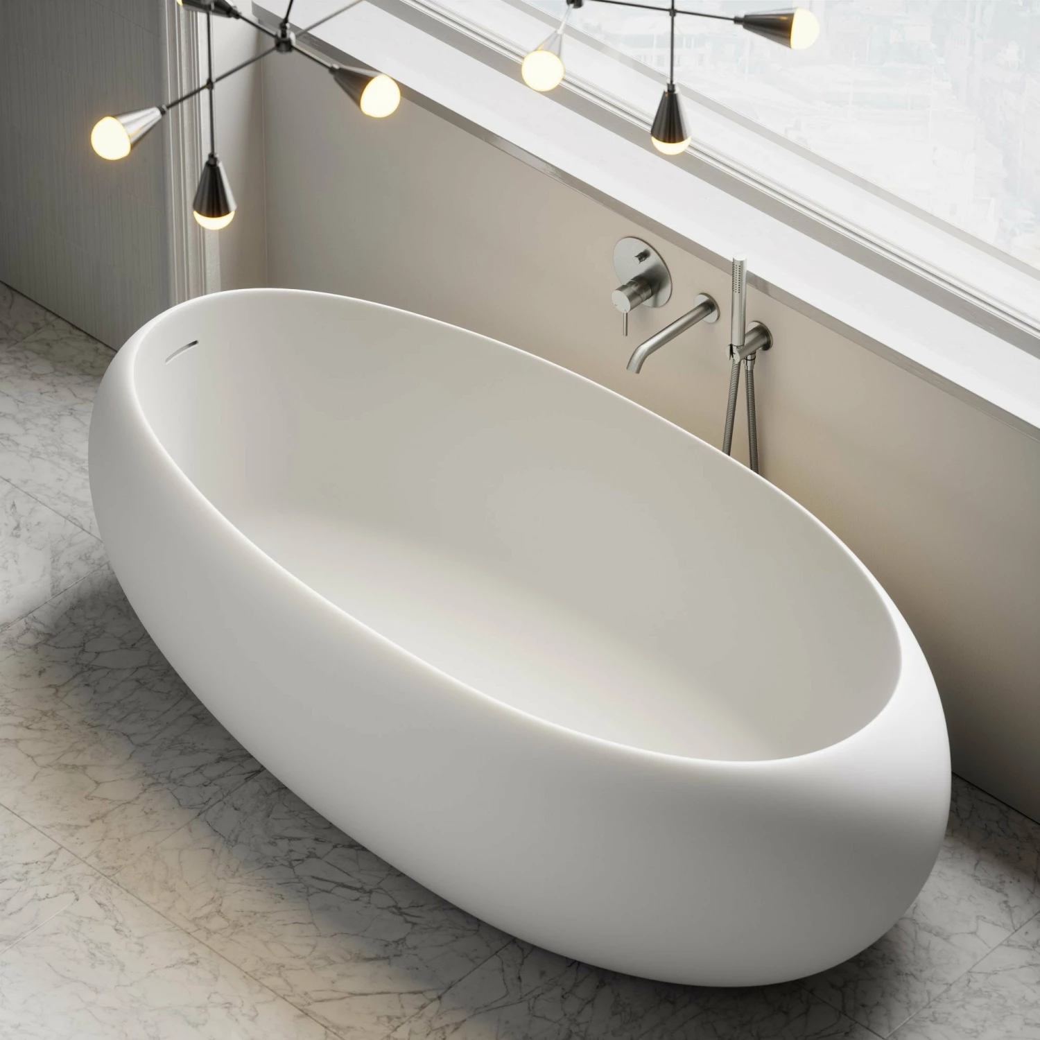 The Pod freestanding stone bath is a truly unique design, with expert craftsmanship exuding from this impeccable piece. This design merges modern glamour with timeless style, achieving a sleek profile through its curvaceous silhouette. If you’re looking to make your interior aspirations a reality, the Pod is a celebration of true craftsmanship and unparalleled artistry, adding uncompromised indulgence to your space. Complement the interior with our collection of floor-standing taps.