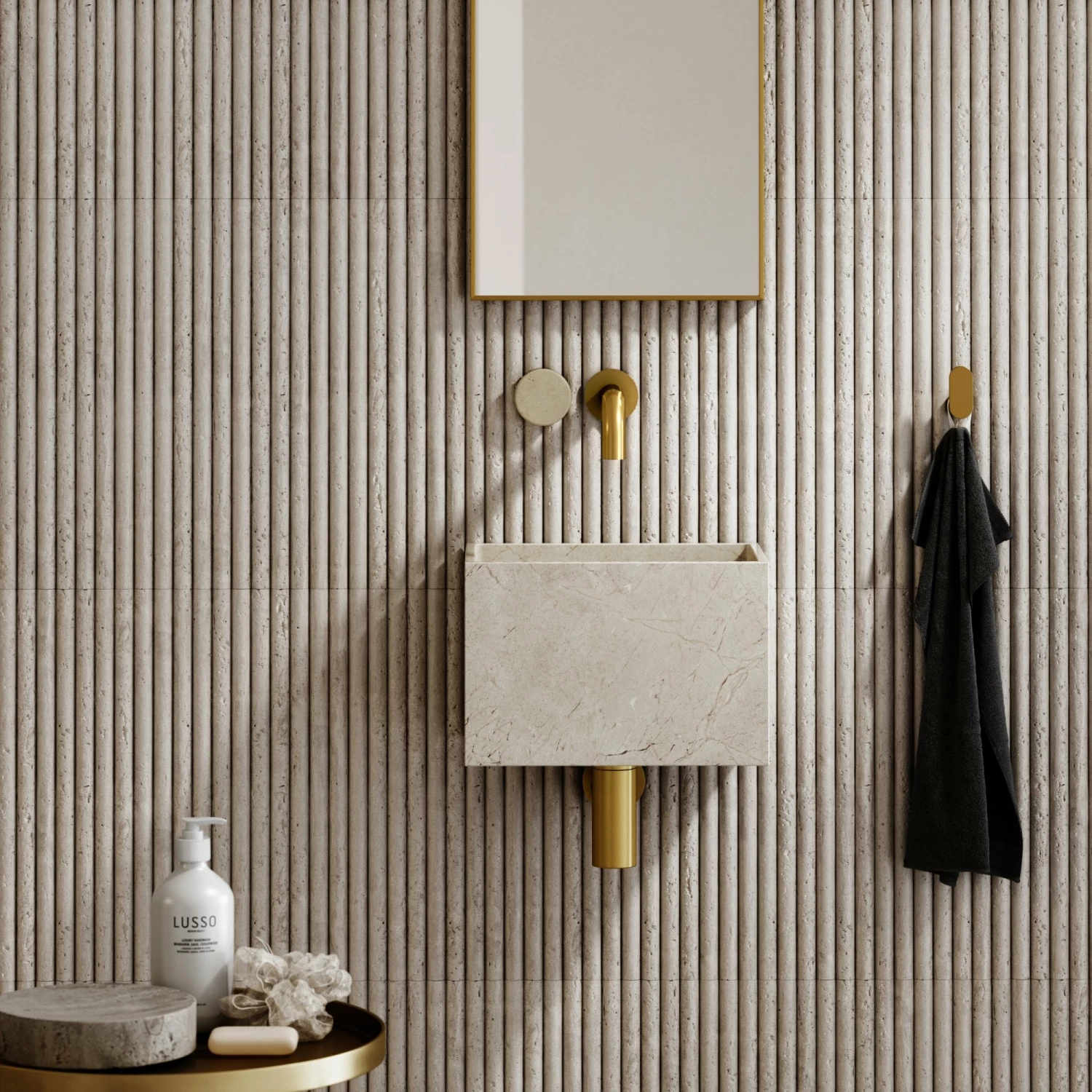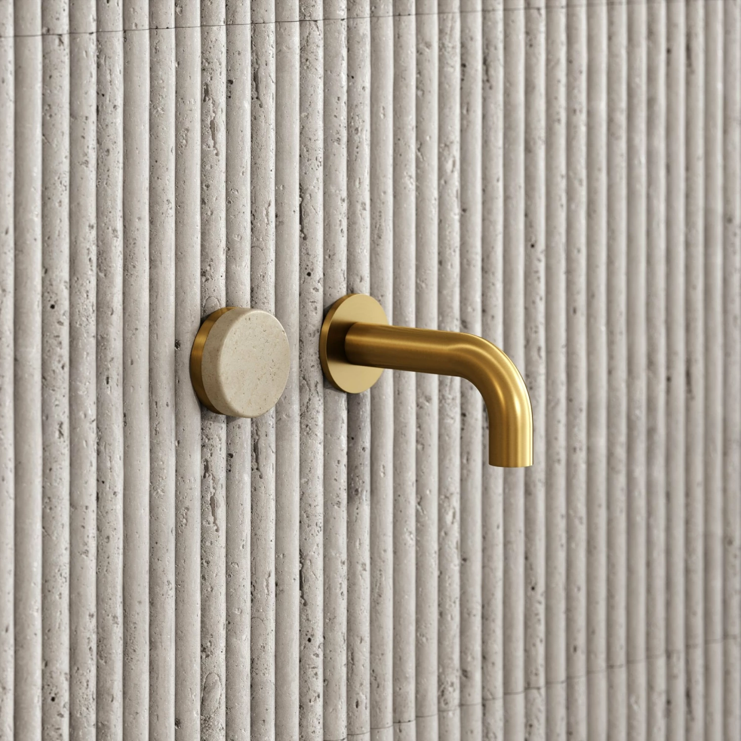 Porto Short Projection Wall Mounted Basin Tap (Brushed Gold & Crema Marfil Marble)