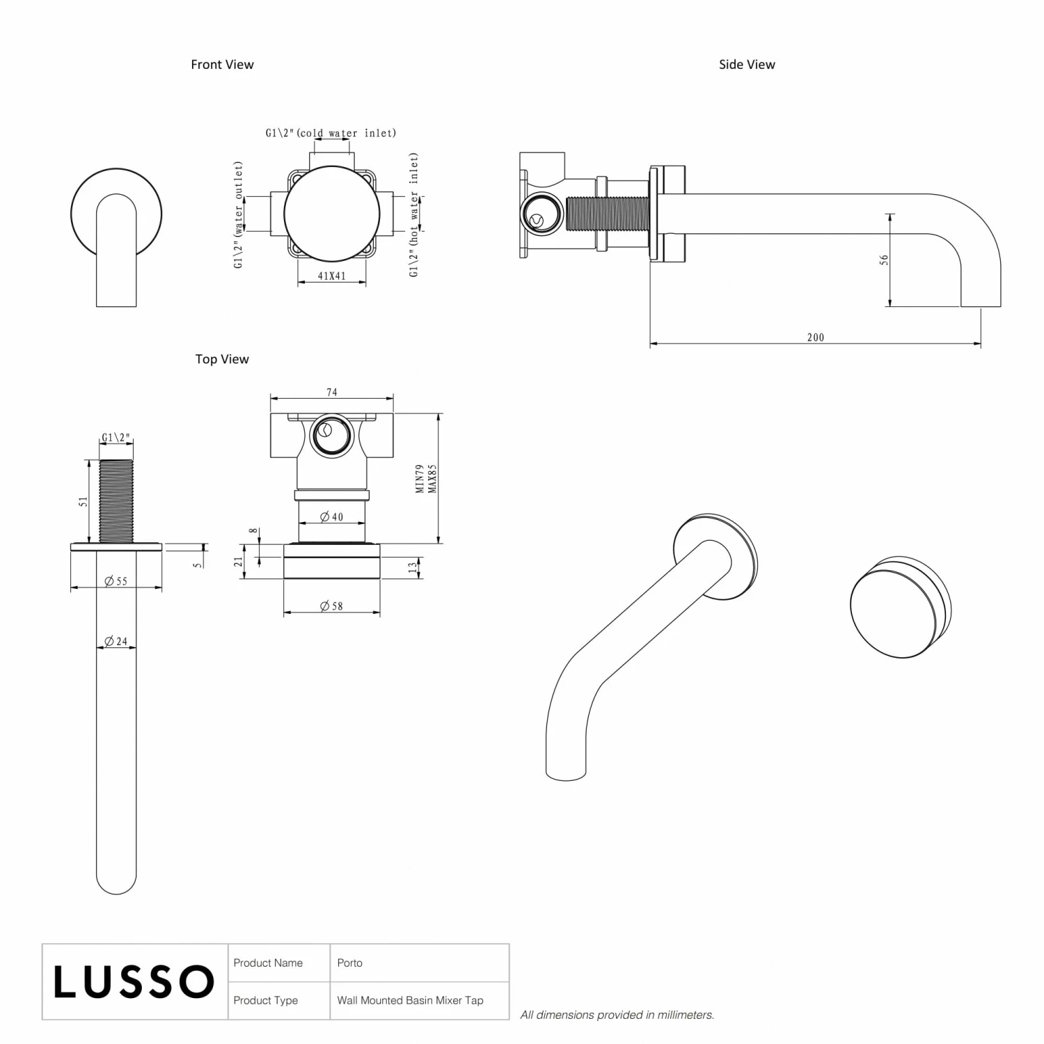 - Spout Projection: 200mm