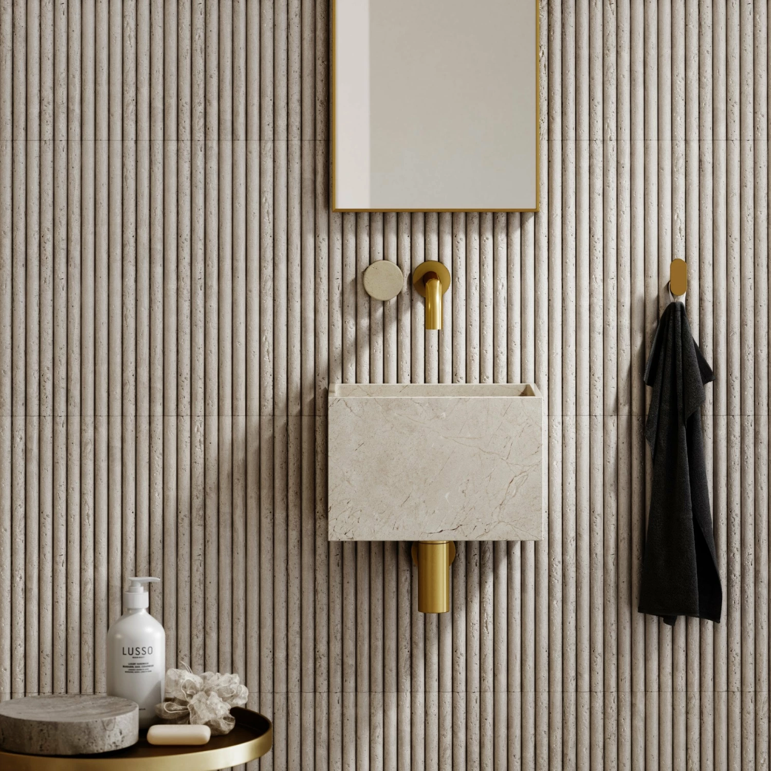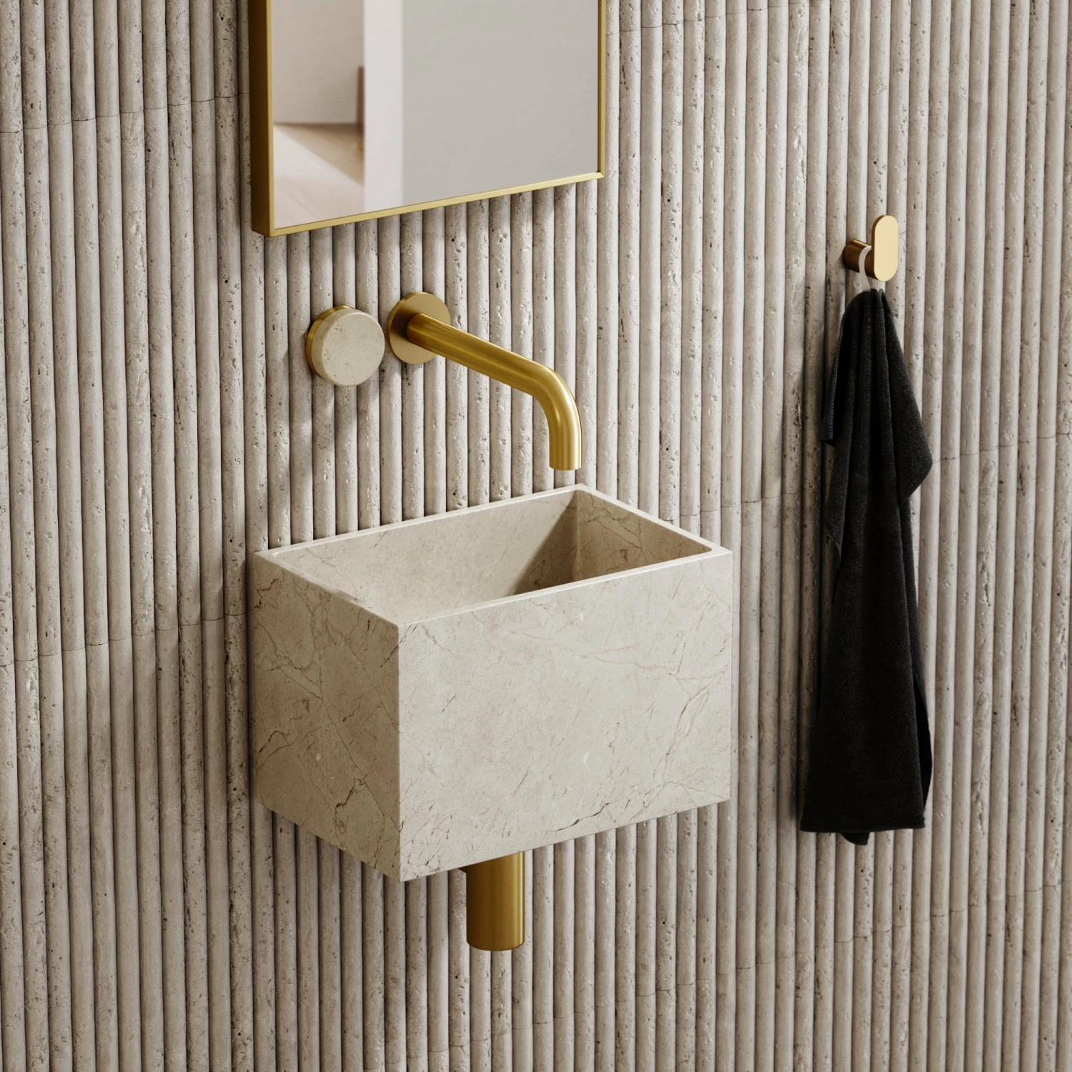 As part of the newly launched Pietra Porto collection, the wall mounted basin mixer tap is beautifully crafted, displaying a fine blend of brushed gold and the muted Crema Marfil. Carved from the same blocks of marble used for our Crema Marfil baths and basins, the Porto basin mixer showcases similar shades and markings throughout, perfect for styling with one another.