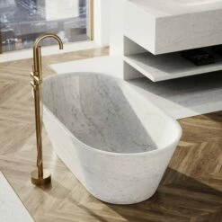 Belmont Traditional Brushed Gold Vanity Unit With Carrara Marble Countertop 1200mm