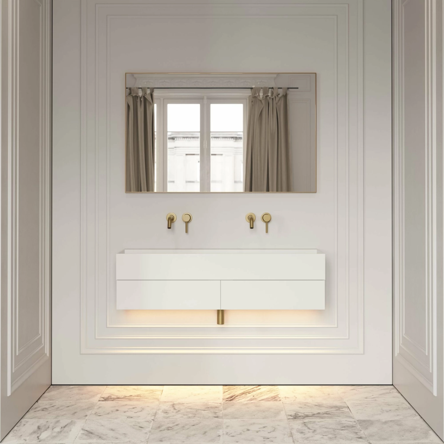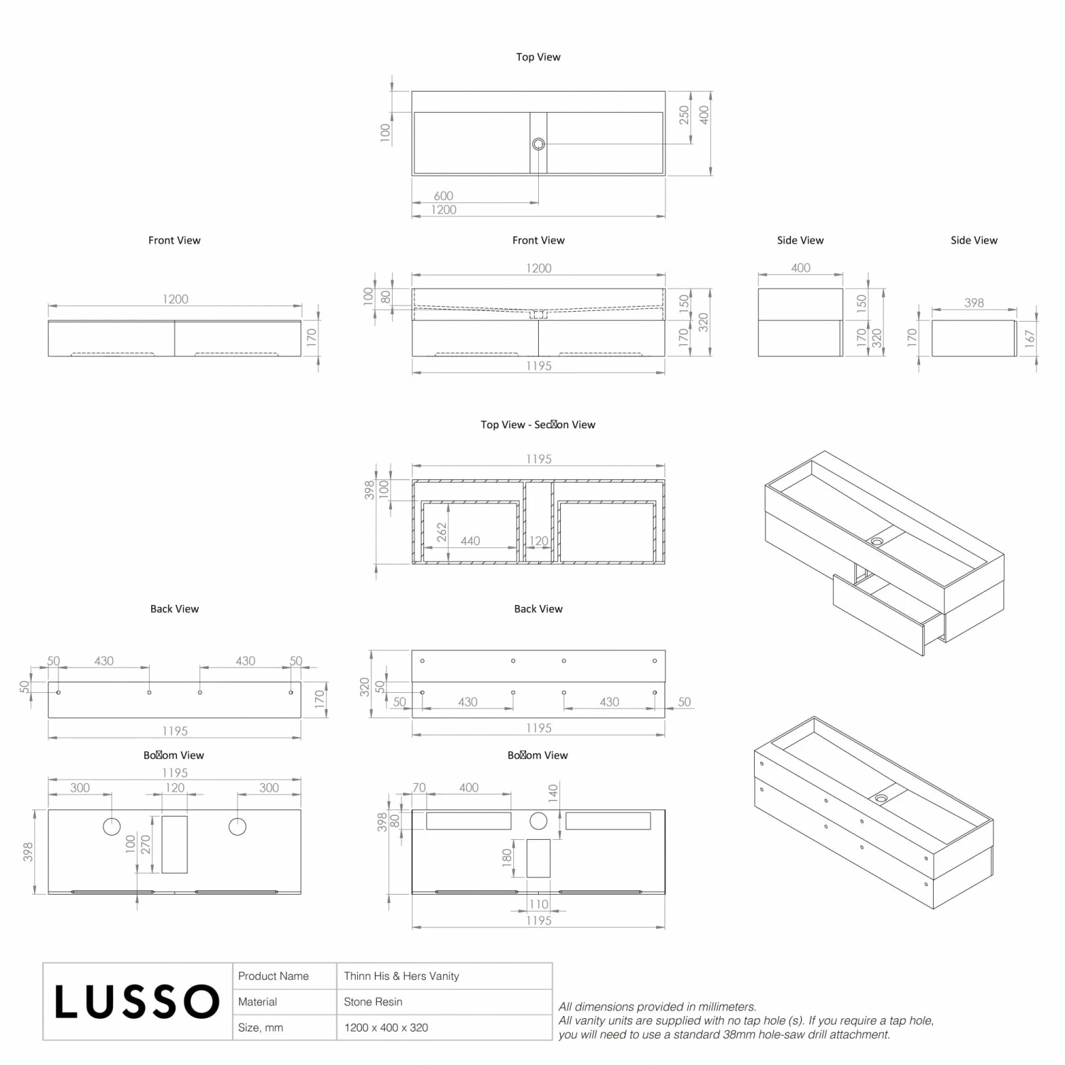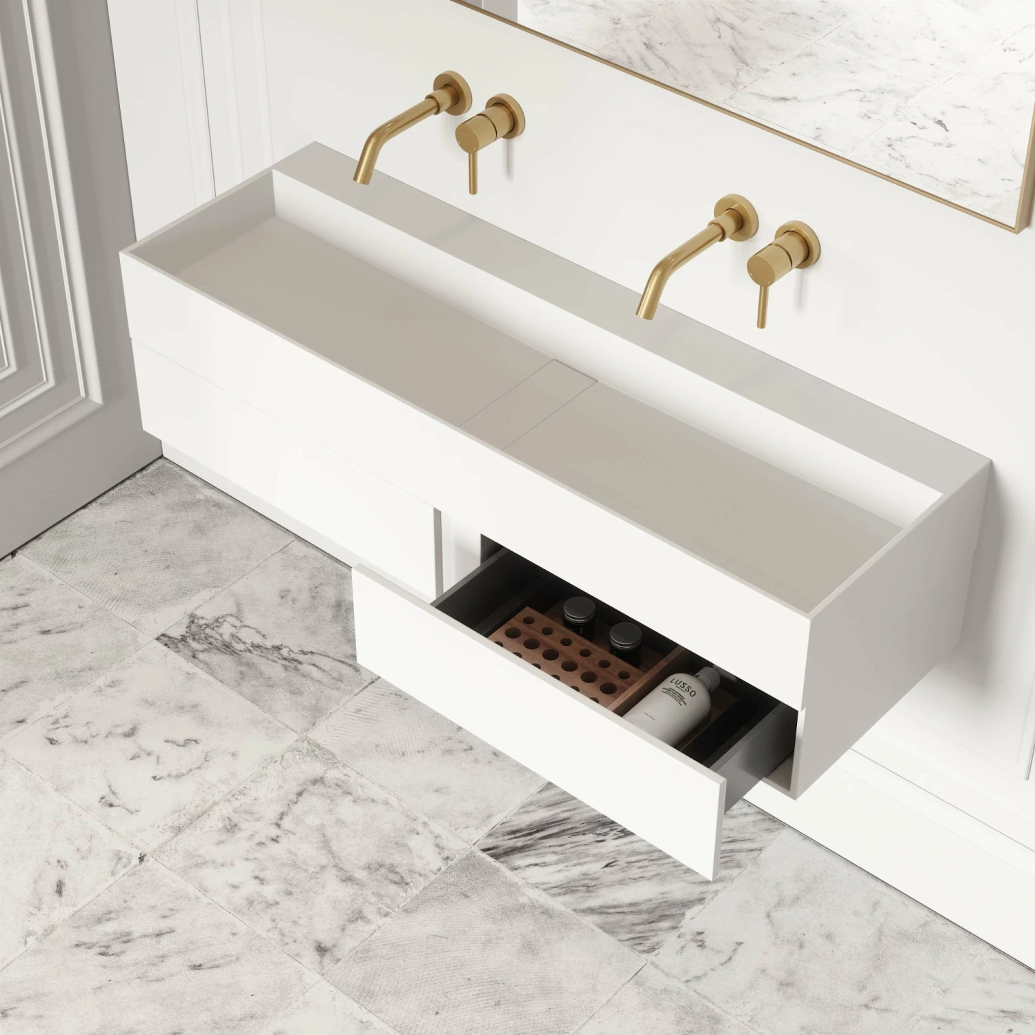 Nothing exudes luxury like the Lusso Thinn Matte White 1200mm Wall Hung Double Vanity Unit (with stone basin included). A truly contemporary and charismatic piece, hand-finished by skilled craftsmen who ensure each piece is finished to the high Lusso standard, the Thinn is the epitome of high-end. Featuring a single channel bowl area, the double vanity boasts sophisticated storage options to fit perfectly into a minimalistic interior. This innovative design is effortlessly elegant and an exceptional addition to any space.