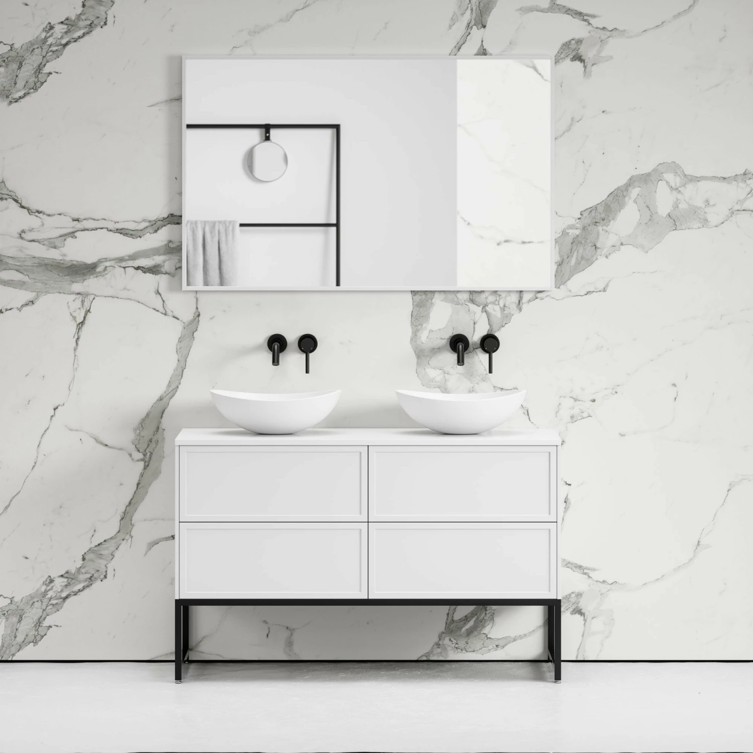 Team this double vanity unit with any of the Lusso countertop basins in a matte finish.
