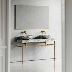 Lomazzo Gold Countertop Vanity Unit Arabescato Marble 1000mm
