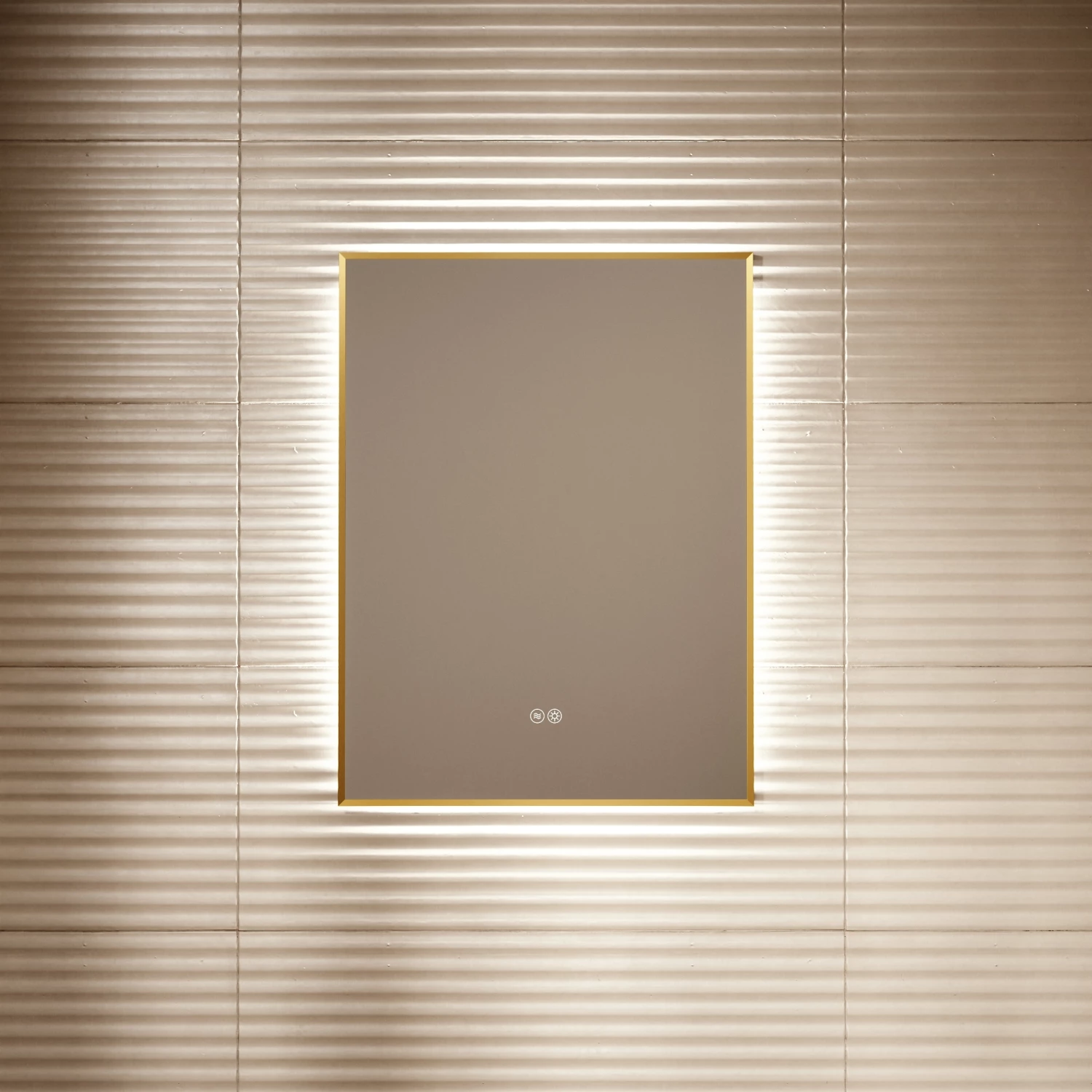 At a width of 600mm, the back lit mirror sits plush against the wall as a focal point. Providing both functionality and beauty, with its touch control LED light and regal brushed gold finish.