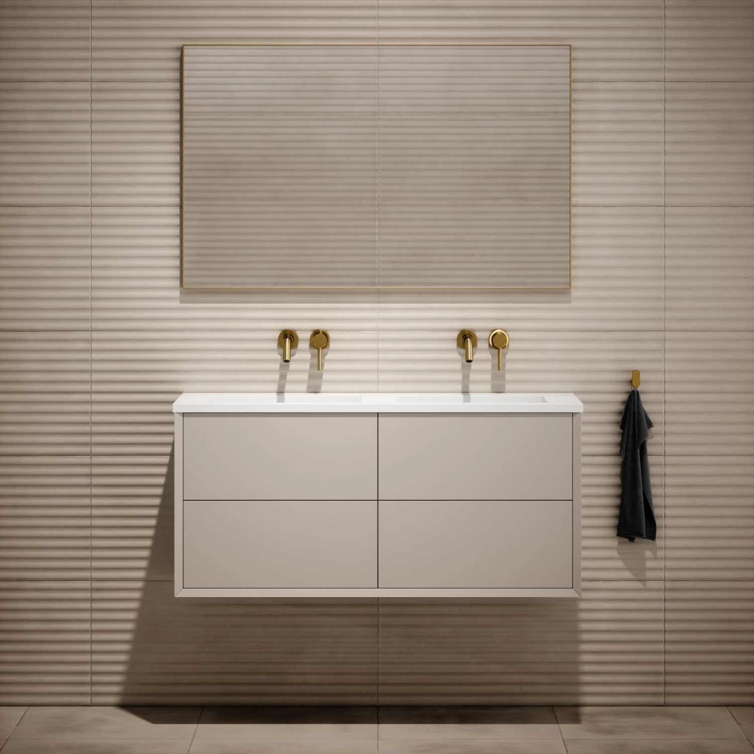 Elegantly pair our Volini Vanity Unit with our selection of wall and deck mounted taps in our signature colourways of brushed gold, matte black and brushed stainless. Along with statement mirrors that will finish off this luxury look.