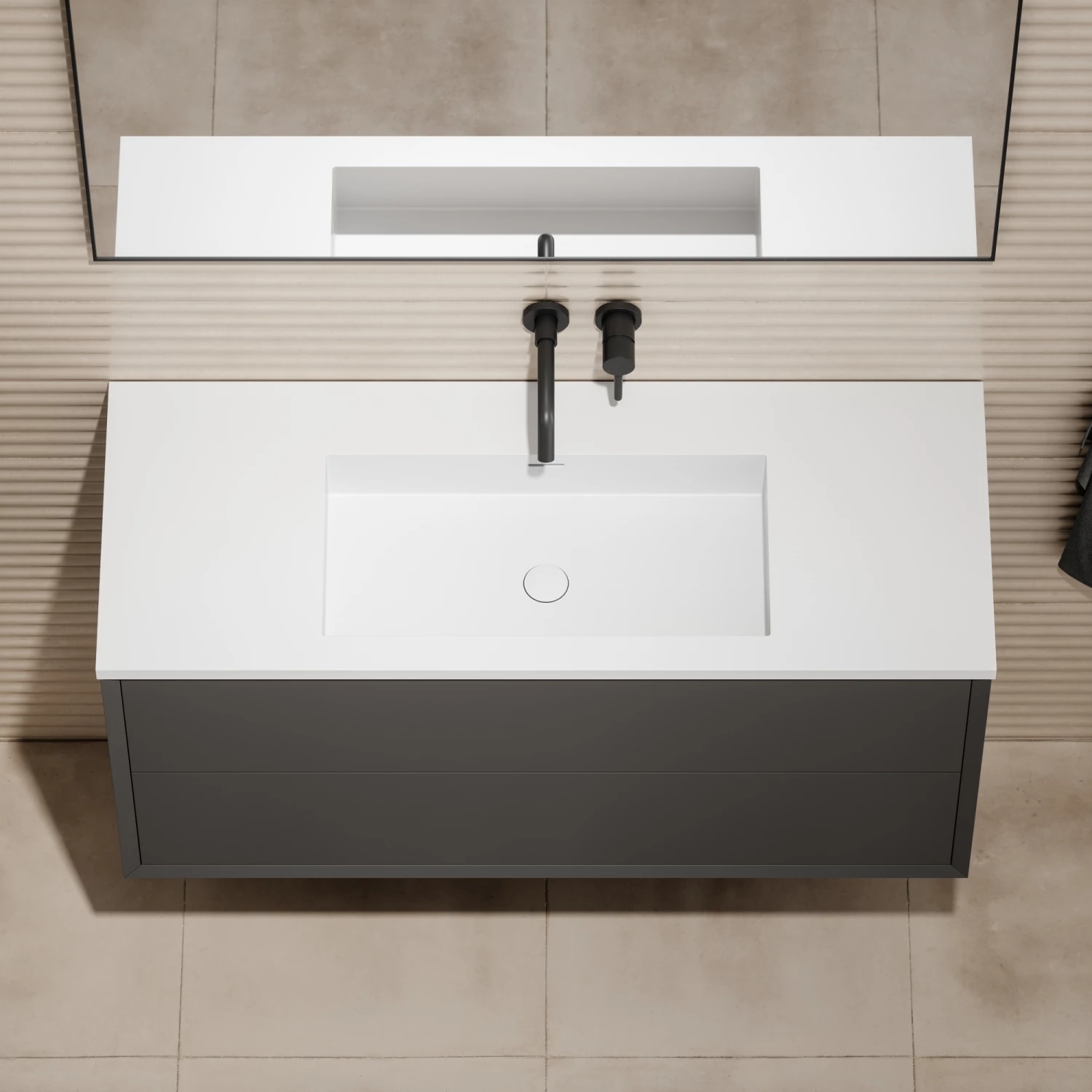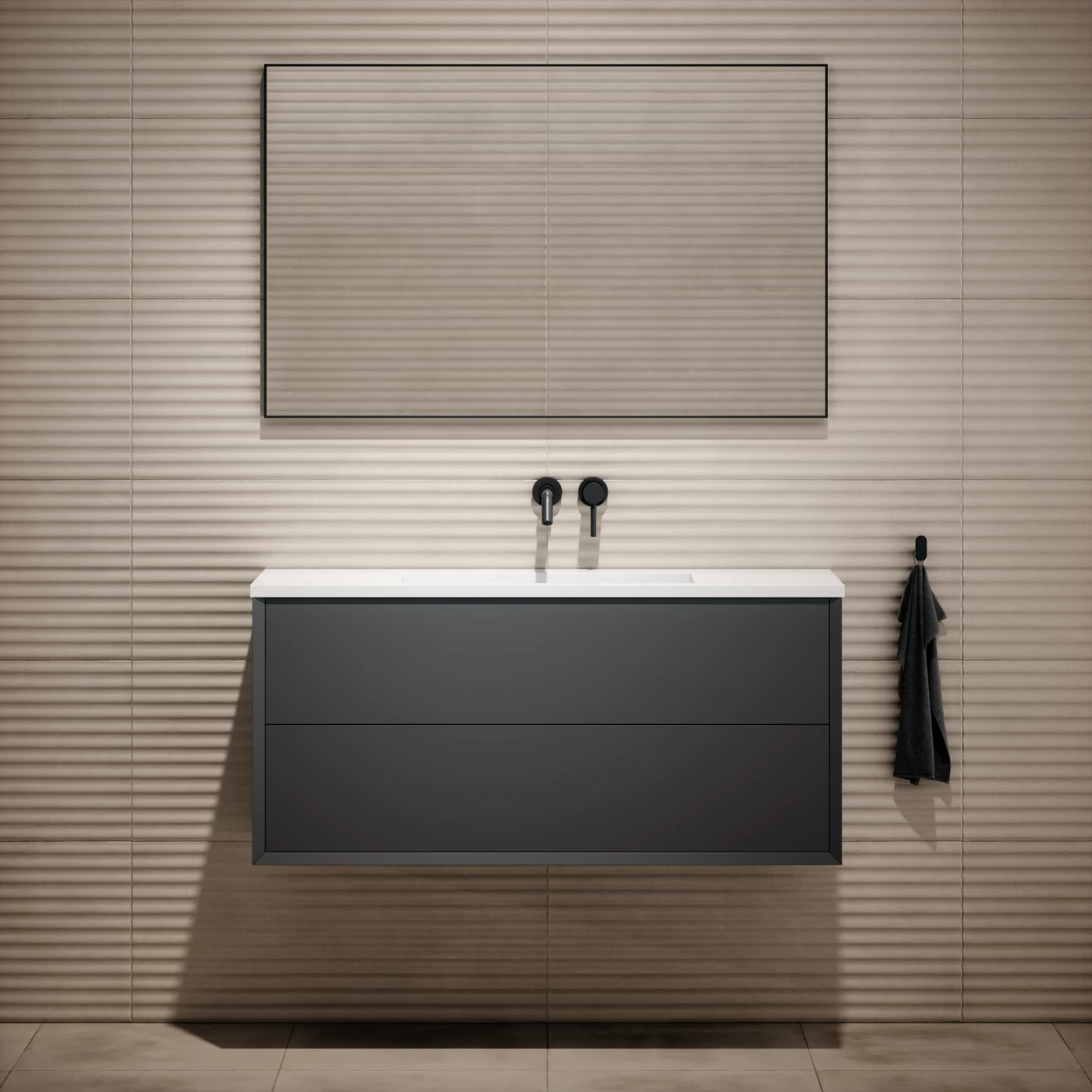 Elegant and striking, the Lusso Volini Matte Anthracite 1200mm Wall Hung Vanity Unit (with stone basin included) is a luxury addition to your modern interior. The contemporary dark hue will create a focal point in any space, adhering to the minimalistic aesthetic with the bevelled edge design and generous storage drawers. The Lusso Volini Matte Anthracite 1200mm Vanity Unit incorporates a classic Lusso basin, fusing effortless style and function to elevate even compact interiors.