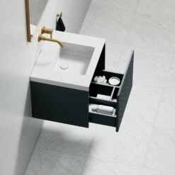 This Matte Anthracite 800mm Bathroom Vanity Unit is manufactured to impeccably high standards with the drawers opened by a spring release Blum drawer system.